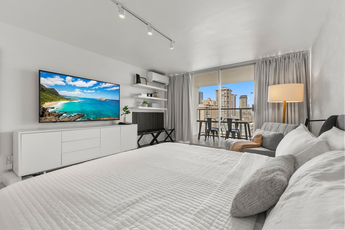 Розкішна пляжна студія в центрі Вайкікі з двоспальним ліжком king-size