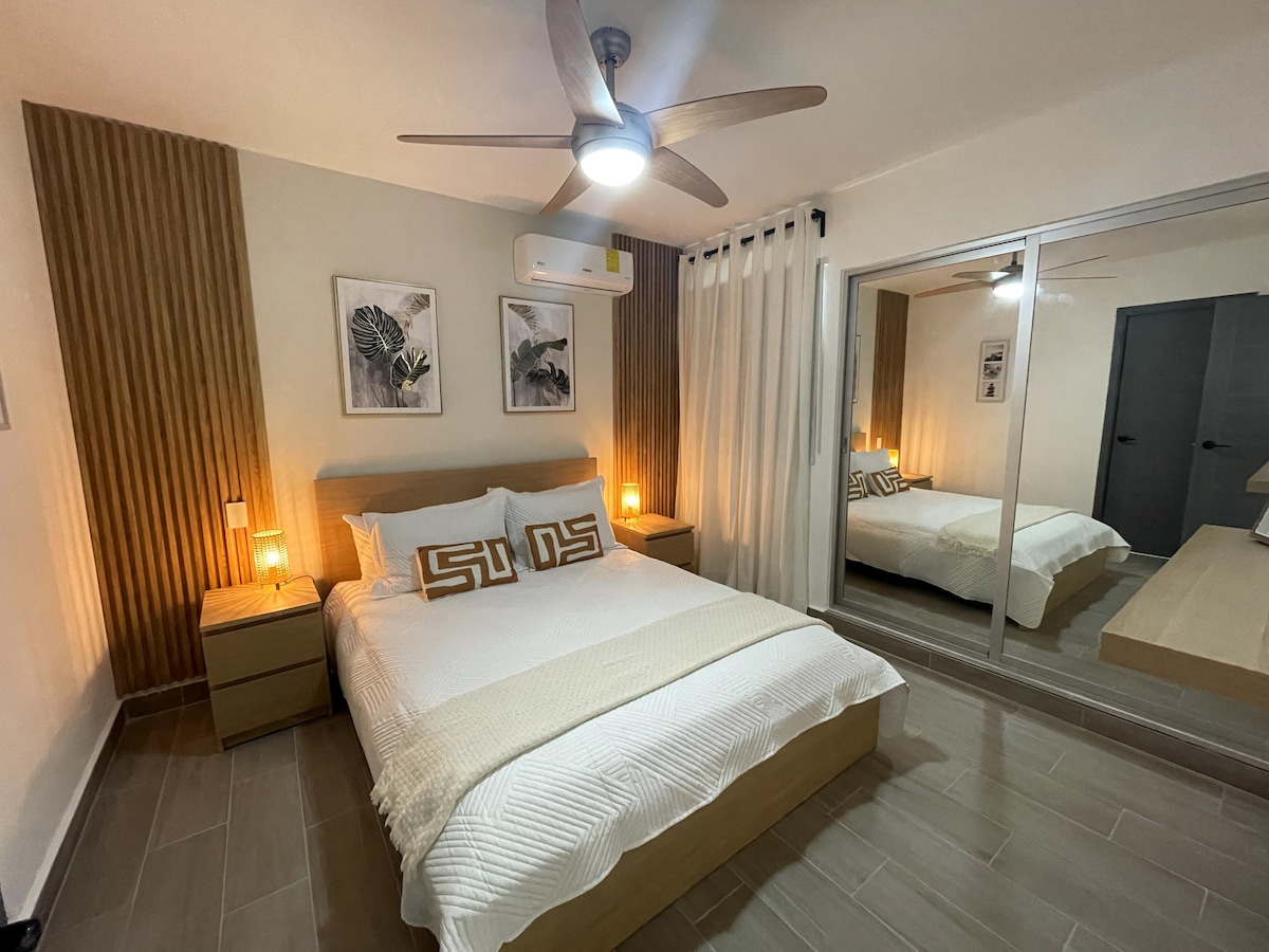Насолоджуйтеся незабутнім відвідуванням, коли ви зупинитеся в цьому унікальному місці. Відпочиньте в цій прекрасній квартирі, розташованій на 3-му поверсі з ліфтом, за 15 хвилин від аеропорту, за 15 хвилин від громадського пляжу Бібіхагуа, за 13 хвилин від центру міста, Coco-Bongo та дельфінарію. За 4 хвилини ми дійдемо до площі з супермаркетом, ресторанами, аптеками та банками. Wi-Fi, Netflix, пральна та сушильна машини та цілодобова охорона.