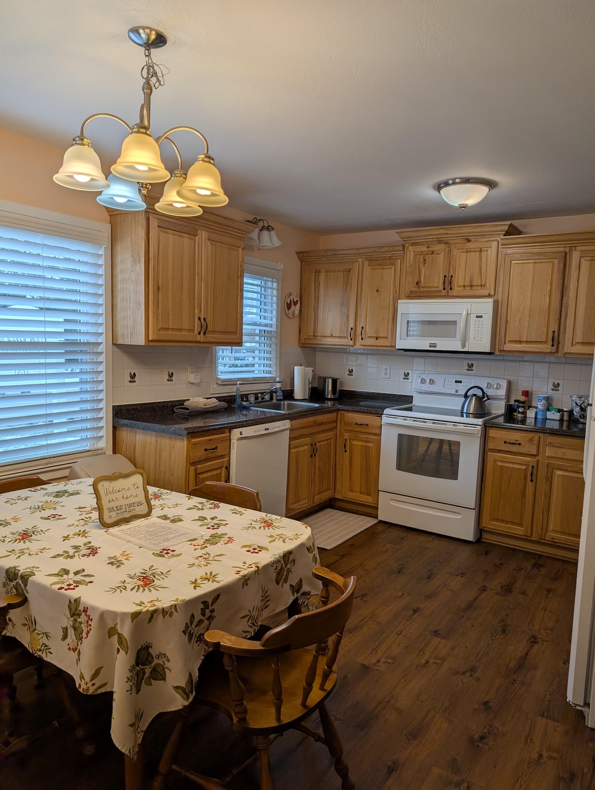 Візьміть тихий відпочинок у цьому повністю відремонтованому історичному будинку, побудованому в 1800-х роках. До послуг гостей відкритий план поверху з лофт-зоною, де розташовані чотири односпальні ліжка *, можна зробити більш приватним, закривши двері стодоли. Є дві ванні кімнати з туалетом, велика кухня, вітальня, їдальня та відкрита зона, яку ми можемо використовувати для рукоділля або інших видів діяльності за запитом. Вона також має систему очищення повітря Halo, яка припиняє частинки вірусу для проїзду через систему опалення, вентиляції та кондиціонування.