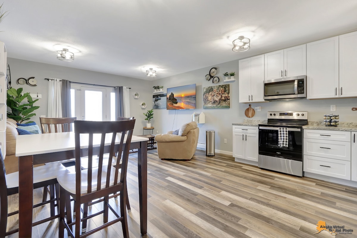 ласкаво просимо до нашої чарівної квартири з 2 спальнями та 1 ванною кімнатою на південному узбережжі в Анкориджі, Аляска. У квартирі є красива, витягнута тераса з затишною вогнищем, виходом до великого двору та грилем для барбекю. Наше розташування неперевершене - з легким доступом до півночі та південного шосе, щоб дослідити всі пропозиції Аляски! До кількох продуктових магазинів, ресторанів і місцевих підприємств можна дістатися пішки. За 10 хвилин їзди до центру Анкориджа, 8 миль до аеропорту Теда Стівенса та 15 миль до JBER.