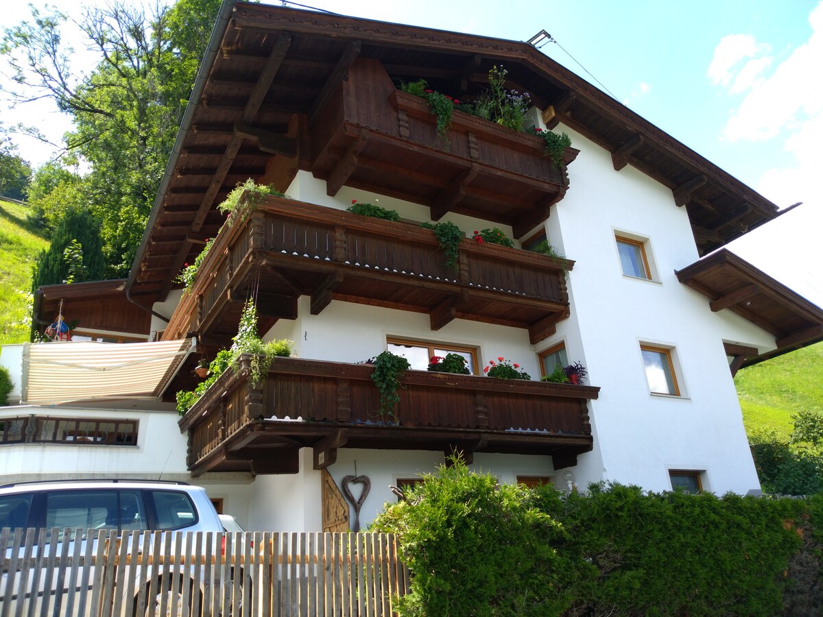 З нами ви можете очікувати затишну квартиру з прекрасним видом на гори Ціллерталь. Квартира пропонує спальню з двоспальним ліжком та односпальним ліжком, добре обладнану кухню з диваном та телевізором, ванну кімнату з душем та окремим туалетом. У помешканні є крита тераса з місцями для сидіння. Крім того, ми пропонуємо вам безкоштовний Wi-Fi, безкоштовне паркувальне місце безпосередньо перед будинком та безкоштовну сушильну машину для катання на лижах.