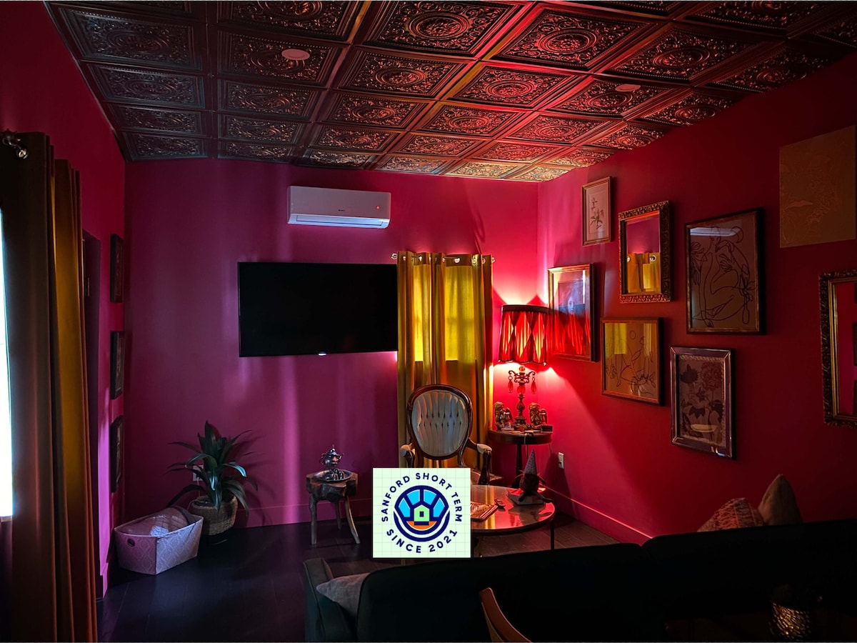 Найкраще розташування, в декількох кроках від історичного центру міста та одного з найстаріших будинків у Санфорді 1894 року. • 1 двоспальне ліжко Queen Size • Наша мета - перевершити ваші очікування, забезпечити комфортний, особистий досвід і дати вам відчуття, що ви вдома. • Boho Nights - це унікальне враження. Відпочиньте на задньому дворі або відведіть свого пухнастого друга до собачого парку вниз по вулиці (у цьому помешканні можна перебувати з домашніми тваринами, але застосовується депозит за домашніх тварин, який не підлягає відшкодуванню). Туффіс знаходиться навколо орнера .