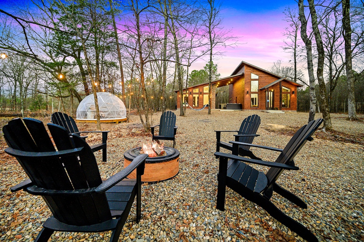 Ласкаво просимо до INTERSTELLAR – чарівного місця для пар, сімей і пухнастих друзів! Завдяки двом люксам із великим ліжком і дивану Queen Sleeper Sofa тут можуть комфортно розміститися до 6 осіб. Відпочиньте в наметі з ранковою кавою або насолодіться спокійним видом на струмок. Насолоджуйтеся гідромасажною ванною, ігровим залом, настільними іграми та ігровим набором для безперервних розваг. Вирушайте в подорож до INTERSTELLAR, щоб отримати справді незабутні враження! ✨