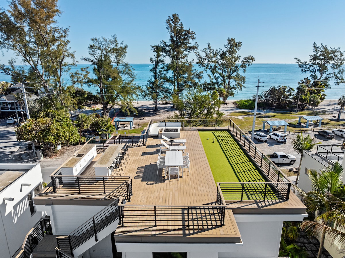 Siesta Key Dream’s largest and most luxurious vacation rental, features four levels, totaling 6-bedrooms, 9-beds, & 6 full-bathrooms. Notable attributes include: a heated-pool, hot tub, 2-balconies, a roof-top sundeck, parking, a backyard and an elevator. With a premier location, beach access point #4 is 400 feet away, and the Siesta Key Village is one block away. In addition to a highly desired location, the unique property design allows beach and Gulf of Mexico views from multiple levels.