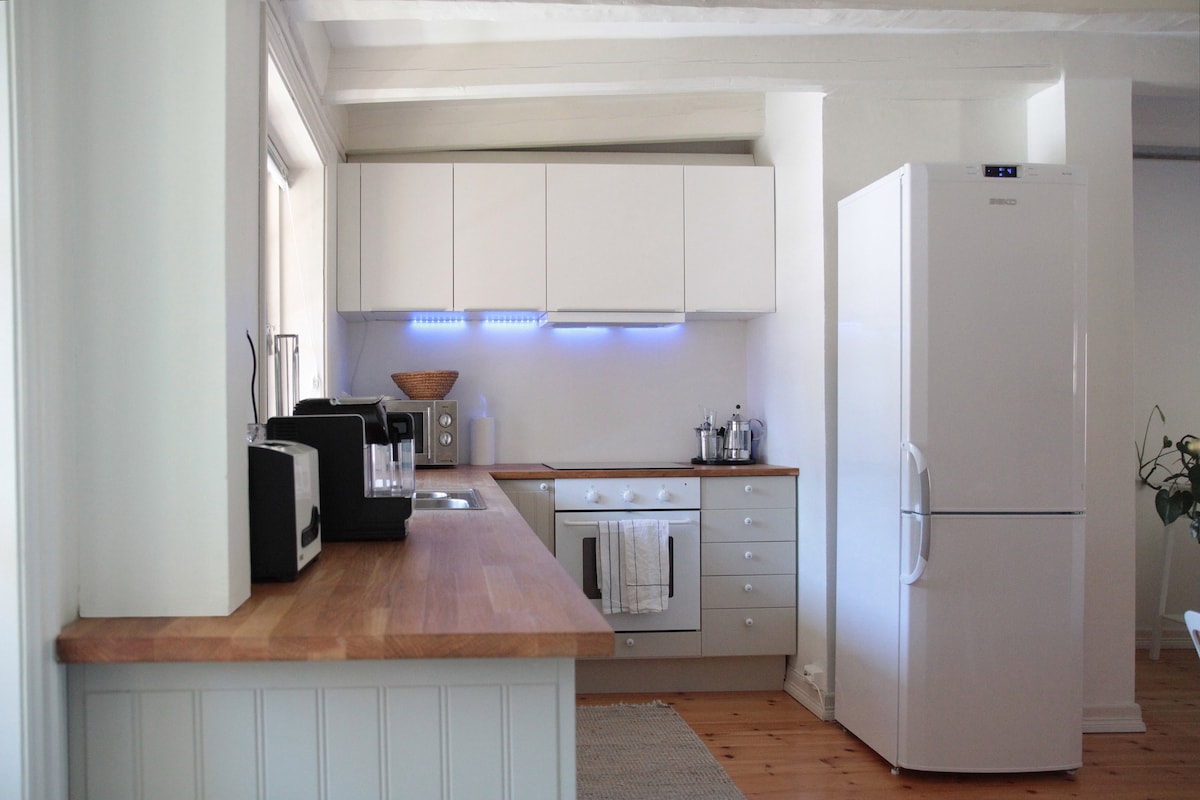 З цієї оселі в ідеальному місці ви можете легко дістатися до всього. Море, гавань, сауна, бібліотека, кафе, магазини та залізничний вокзал. Унікальність квартири: Заспокійливі кольорові комбінації в поєднанні з творчим самовира Гармонійна та домашня квартира, де можна знайти спокій і відпочити. Гарний краєвид на фьорди та небо сприяє спокою. Фортепіано доступне для тих, хто хоче спробувати. Морозильник для тих, хто особливо зацікавлений. Теплий прийом!