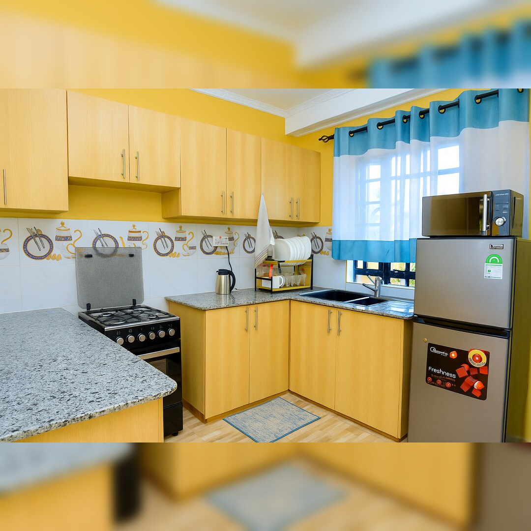 This is a fully Furnished & Serviced 2 Bedroom Apartment Located in Homabay along Hospital Road Features; 1. Free wifi 2. Fully Equipped Kitchen 3. Smart Tv 4. Hot showers 5. Free Parking 6. Daily Housekeeping 7. Accommodates a Maximum of 4 pax