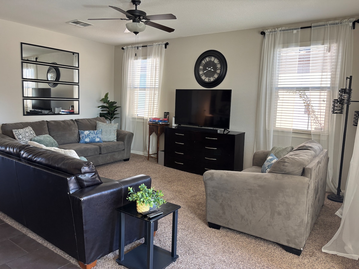 Цей приватний будинок пропонує 4 просторі спальні, 2 ванні кімнати та чудовий задній двір для відпочинку. Зручне розміщення 8 гостей. Їдальня - ідеальна зона для насолоди їжею. Вітальня чудово підходить для розваг, ідеально підходить для неквапливого вечора кіно. Включає: Wi-Fi, Netflix, опалення та холодильник, пральню з праскою, зовнішнє спостереження для безпеки. Розташований в 5,7 милі від I-10, за 4 милі від Lopp 375, 12,5 милі з аеропорту та в 15 милях від Форту. Блаженство та багато ресторанів поблизу.