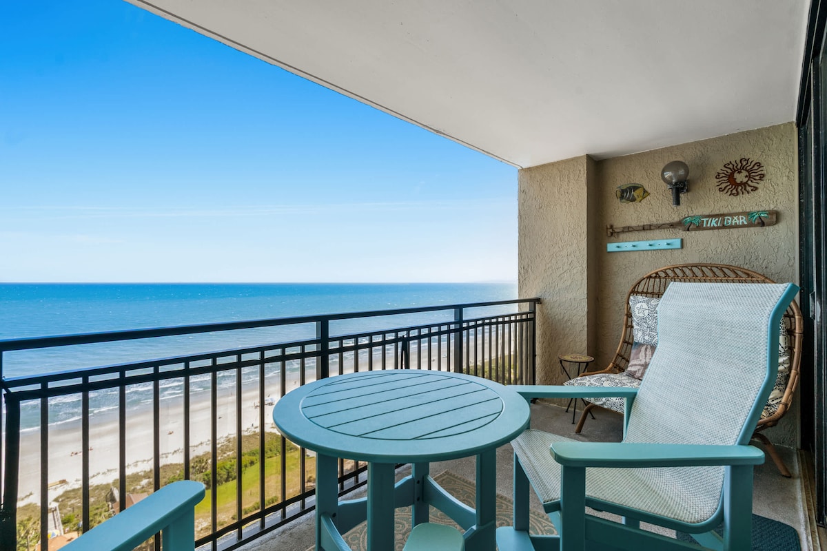 Приголомшливий пентхаус на 10-му поверсі з прямим видом на океан у Мертл-Біч! Ця повністю відремонтована квартира з 1 спальнею та 1 ванною кімнатою зручно вміщує 4 людей. Насолоджуйтеся приватним балконом, ліжком розміру «king size» і басейнами курорту. Ідеально підходить для романтичного відпочинку або невеликої сімейної відпустки. Розташована в центрі, поруч із набережною та найкращими пам’ятками. Вас чекає незабутній відпочинок на пляжі! Мінімальний вік оренди: 25 років