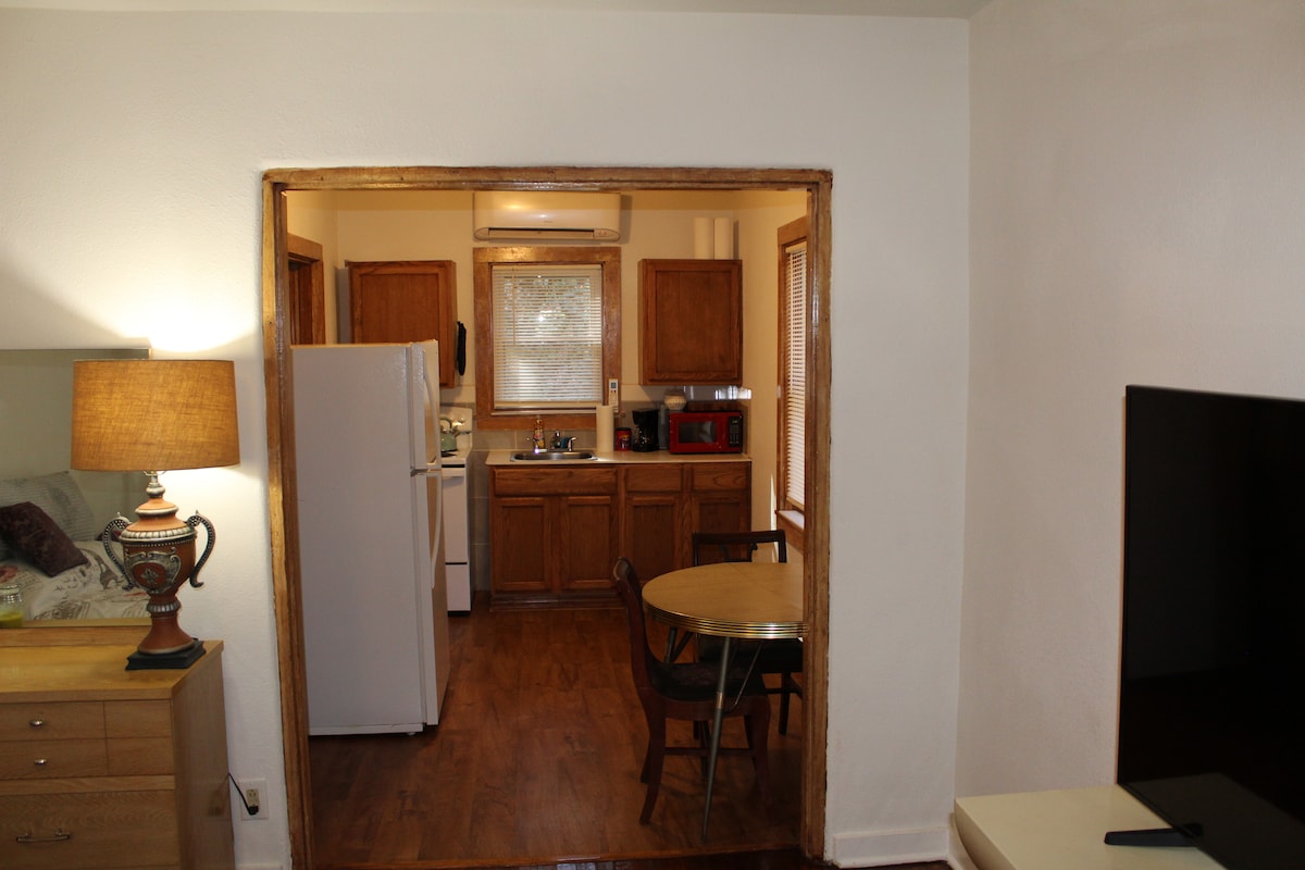 Only You & Yours in a Super Clean Newly Remodeled Studio! No Fees! Full size Refrigerator and Stove Microwave and Coffee Maker Dishes New Linens and Towels Breakfast Table WiFi and TV Well lit streets walking distance (One Half Mile) from Bathhouse Row. Visit Hot Springs National Park! We pride ourselves in offering a very clean space for our guests!