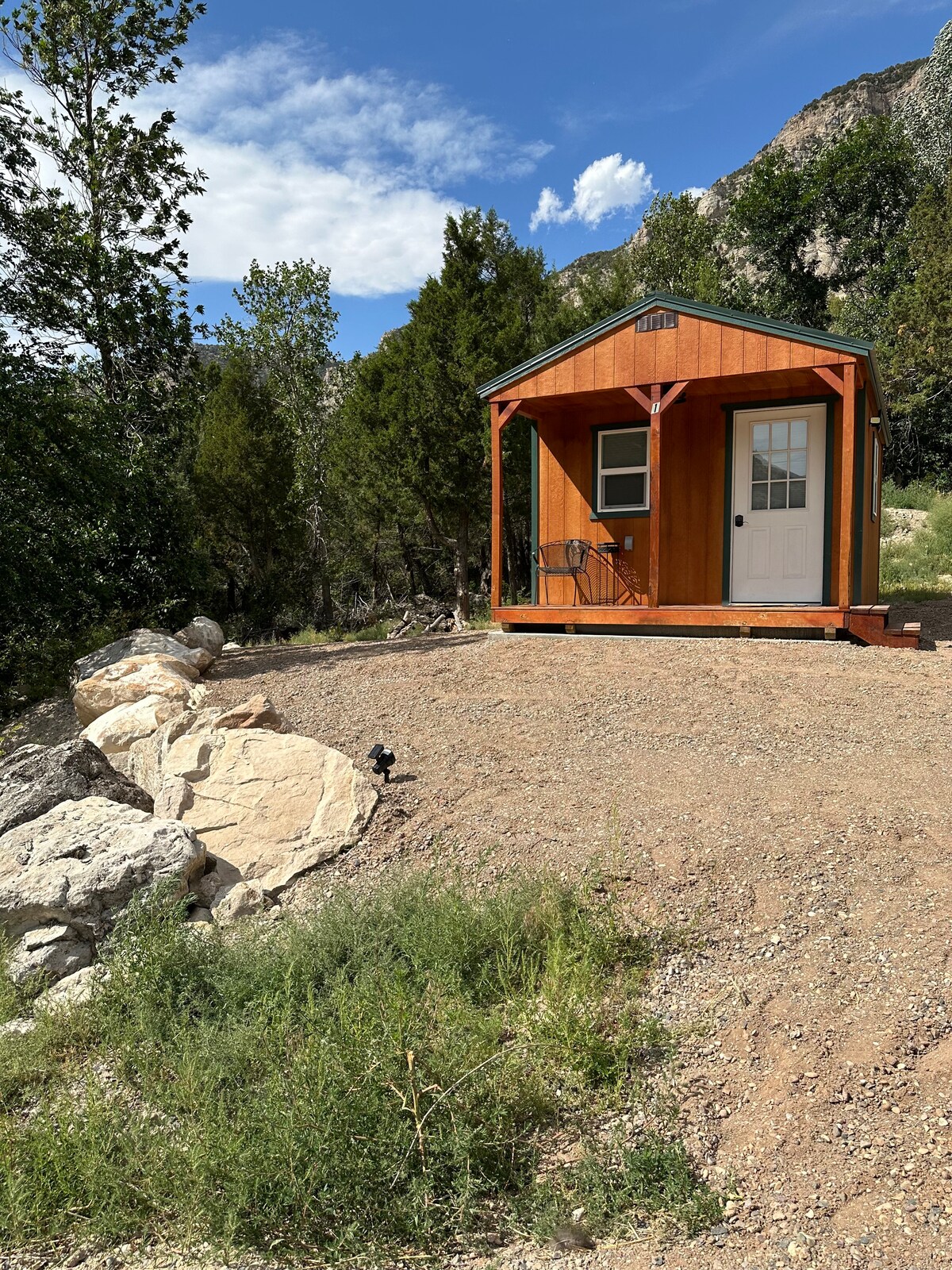 Ретрит розрахований на 2 дорослих і розташований в сільській місцевості для спокійного перебування. Кухня повністю оснащена холодильником, газовою духовкою та посудомийною машиною. Пральна/сушильна машина в спальні з ліжком розміру «queen-size», шафою та тумбочками. У вітальні є диван, стілець і телевізор з WI-FI. Велика ванна з душем, раковиною та місцем для зберігання речей. Будинок приватний, недалеко від усіх пам 'яток, які може запропонувати Термополіс. Розташоване в 4 милях на захід від Термополіса з прекрасним видом на річку Біг-Хорн і гори.