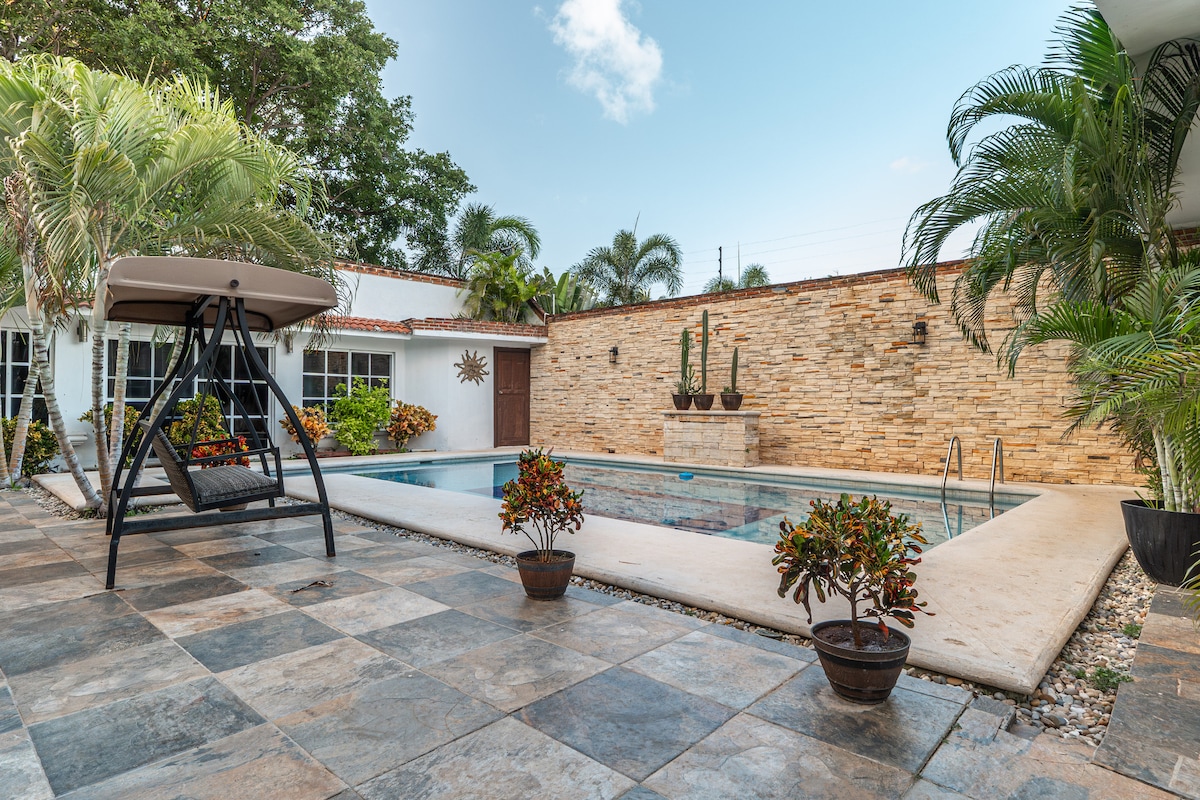 Красивий будинок з 2 поверхами, чотирма спальнями та 2,5 ванними кімнатами в готельній зоні Канкуна (поруч із лагуною). Завдяки сучасному штриху, розташуванню та басейну. Цей будинок ідеально підходить для сімей і груп друзів, які хочуть відпочити і насолодитися прекрасним раєм Канкуна!!! =D