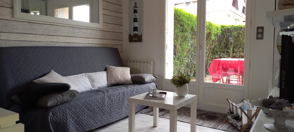 Приходьте і зарядіться енергією в цій прекрасній квартирі площею 25 кв. м з видом на море з декором «пляжного зрубу»! Повністю відремонтований влітку 2024 року, він розташований на набережній, в 2 кроках від центру міста Вільер-сюр-Мер: ідеально підходить для насолоди пляжем, містом та його діяльністю. - Постільна білизна та рушники надаються - Wi-Fi і смарт-телевізор. - 1 невелика спальня з ліжком 140x190 см. - Вітальня з дуже зручним розкладним диваном 140x190 см. - Обладнана кухня. - Вхід із робочим столом