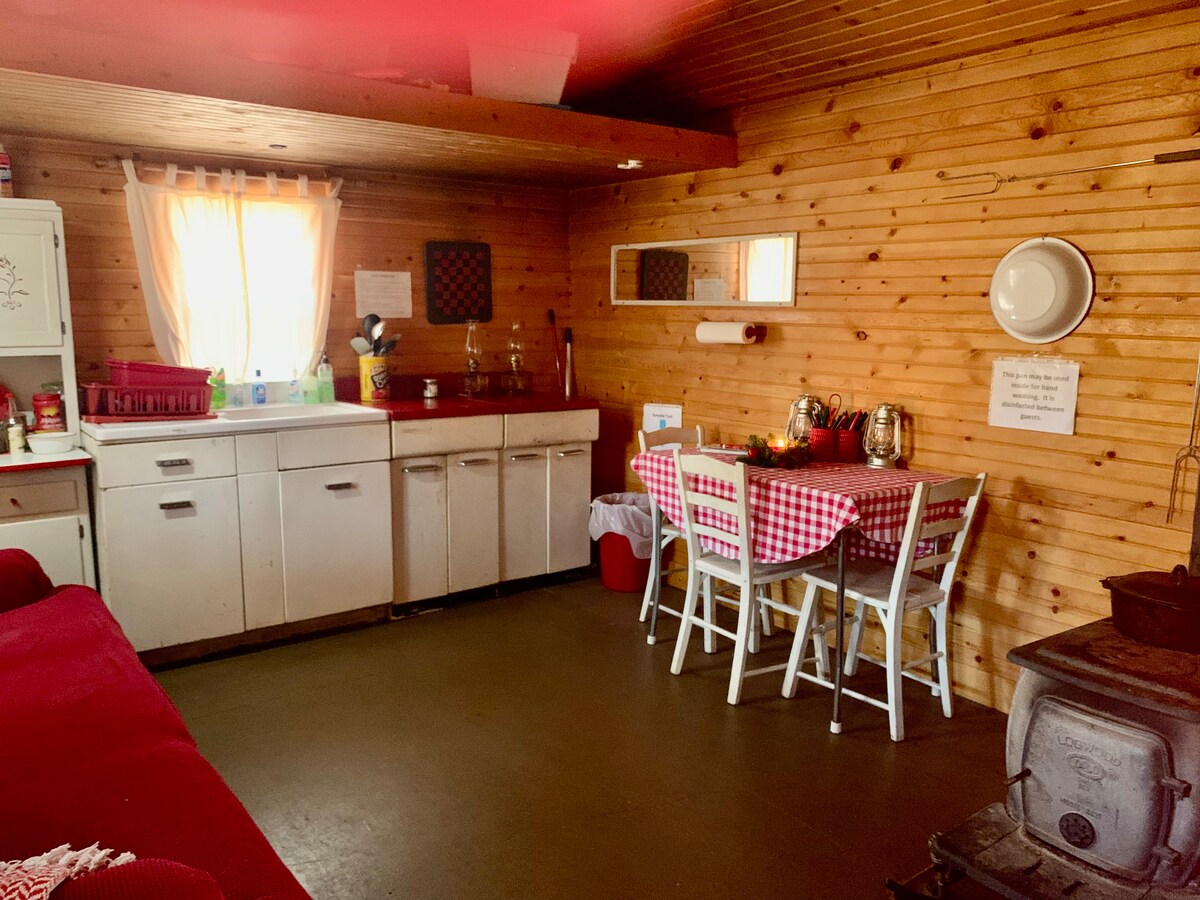 Затишне місце, де можна відпочити й розслабитися. У цьому помешканні, розташованому далеко від цивілізації, немає електрики та змивних туалетів, але ми забезпечуємо найнеобхідніше: гарячу воду, вбиральню та пропанове освітлення. Перебування передбачає доступ до власноруч побудованої дров’яної сауни. (Ванна досі будується. Благоустрій та деякі фінальні деталі ще не завершені.) Щоб дістатися до будиночку, потрібен повнопривідний автомобіль або автомобіль з приводом на два колеса. Ми повинні зустріти гостей після прибуття, щоб показати вам, як користуватися пропановими світильниками.
