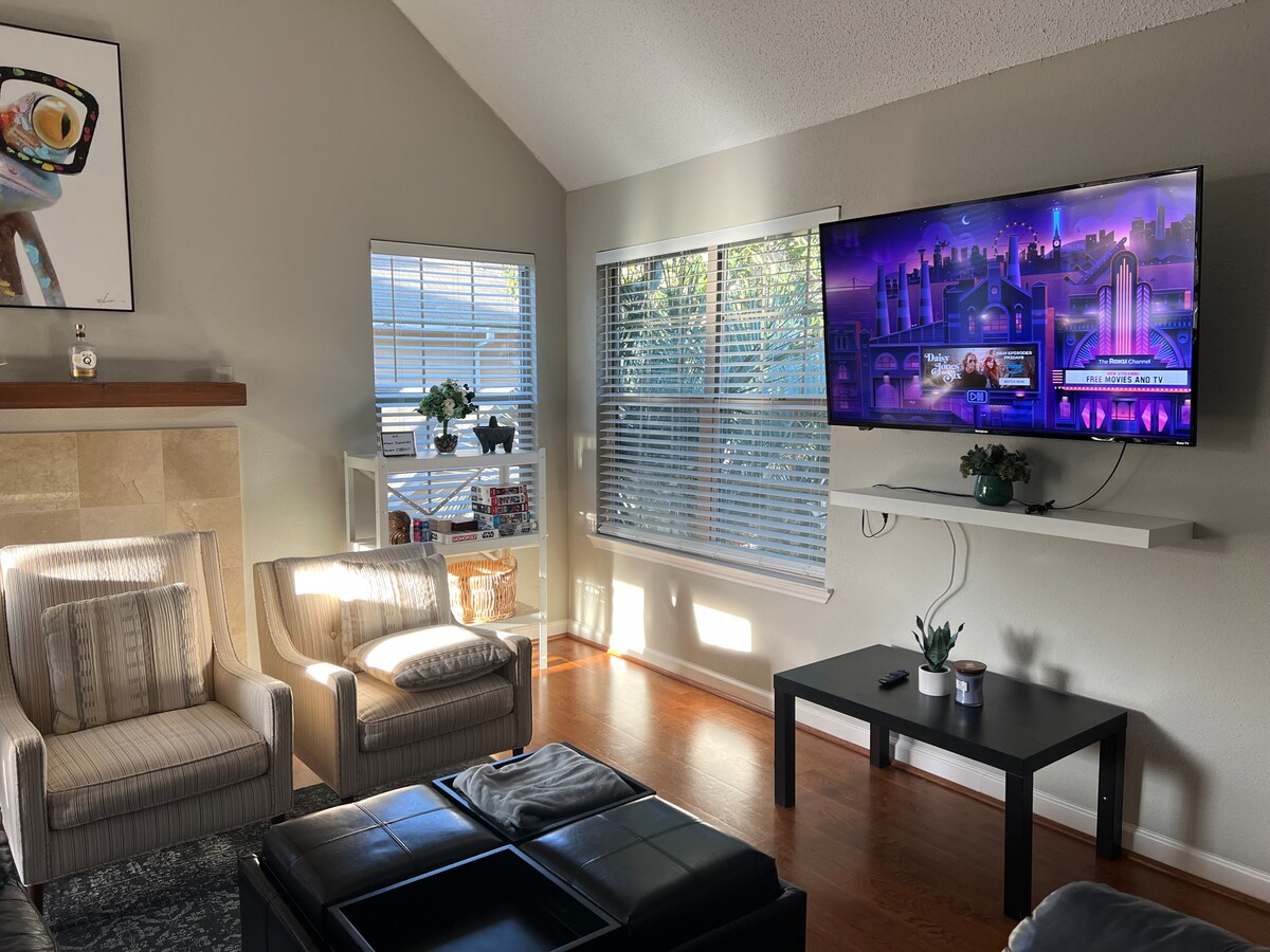 Відпочиньте в приватній круглорічної джакузі. The Landing Pad – сучасний будинок із 3 спальнями, 2,5 ванними кімнатами та 6 справжніми ліжками, створений для комфорту. Ідеально підходить для сімей, ділових поїздок і невеликих груп (до 12 гостей). Розташований на тихій вулиці за 10 хвилин до центру міста, за 5 хвилин до медичного центру та менше ніж за 5 миль до стадіону NRG (приймач Чемпіонату світу з футболу 2026 року). Насолоджуйтеся місцем для багаття, грилем для барбекю, швидким Wi-Fi, смарт-телевізорами та повністю укомплектованою кухнею. Легке самостійне заселення, безкоштовна парковка та підтримка супергосподаря. Вечірки та заходи заборонені.