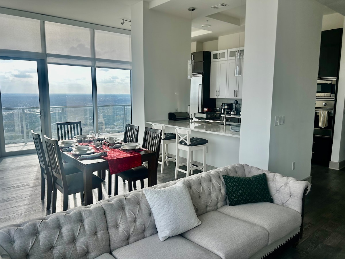 Відкрийте для себе Х 'юстон у сучасному люксі з захоплюючим видом на місто. Зручності помешкання: → Блискавка Швидкий Wi-Fi Wi-Fi → Робоче місце з монітором + HDMI → 55-дюймова вітальня + телевізор у спальні + Netflix → Повністю укомплектована кухня. → Пральна й сушильна машини → Приватний захищений паркінг → Зручне ліжко King Size Зручності в будинку: → Басейн і місце для барбекю → Корпоративна офісна кімната + робоче місце → Приватний тренажерний зал Ідеально підходить для бізнес-мандрівників, корпоративних клієнтів, пар і всіх, хто хоче стильно познайомитися з багатою культурою Х 'юстона.