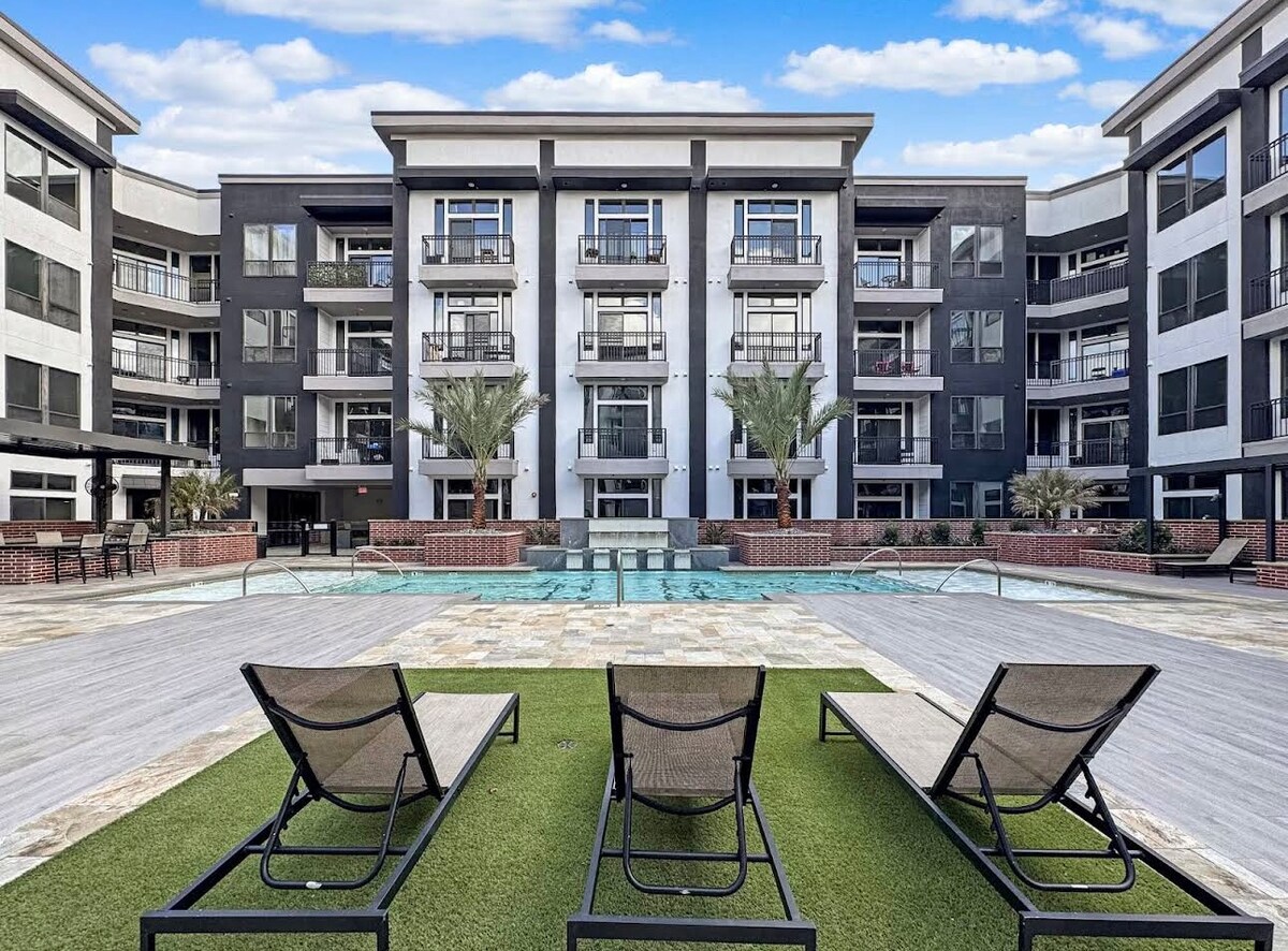 Відпочиньте спокійно в цій розкішній квартирі з 1 спальнею та 1 ванною кімнатою з внутрішнім двориком біля басейну, розташованій в житловому комплексі Kirby. Якщо ви хочете забронювати помешкання неподалік від стадіону NRG у пішій доступності від РОДЕО, це ідеальне місце! Ми знаходимося в 15 хвилинах ходьби від парку NRG і в 7 хвилинах їзди від Техаського медичного центру. Ми розташовані поблизу багатьох інших улюблених місць у Х 'юстоні, включаючи музейний район, Х' юстонський зоопарк і безліч ресторанів.
