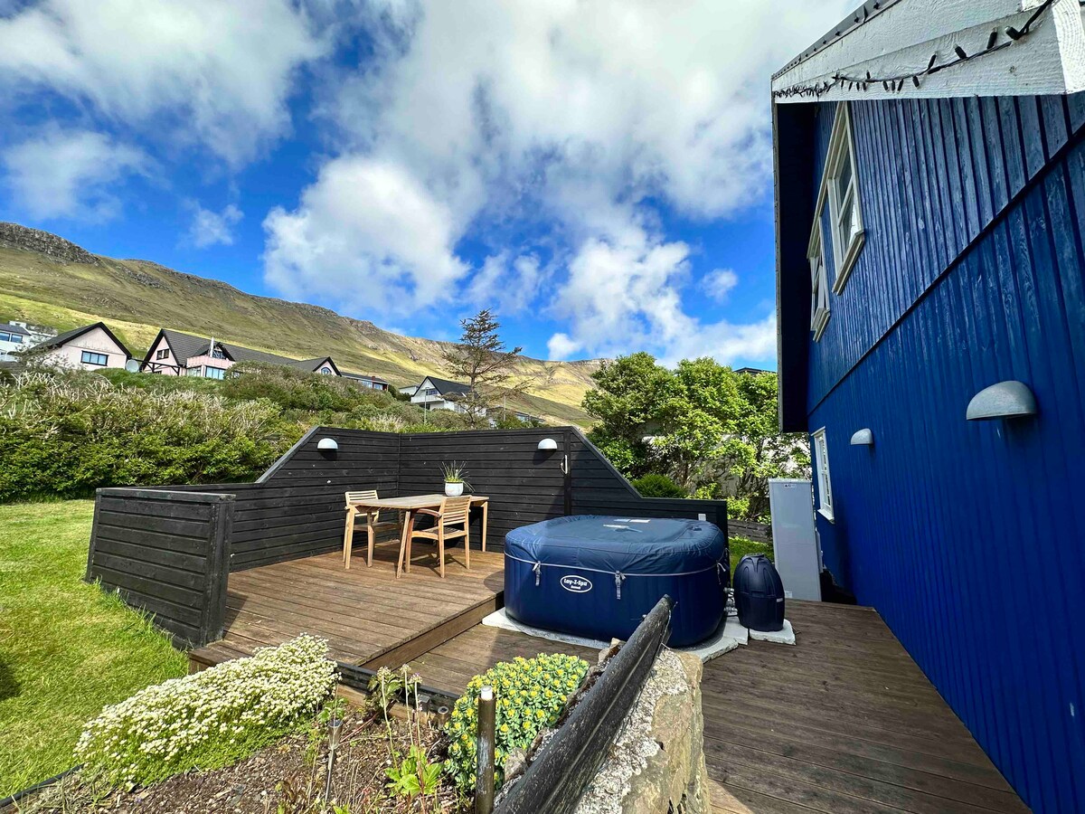 Мій традиційний фареський будинок розташований на південному острові Судорой, в оточенні захоплюючої природи з громадським транспортом прямо біля дверей. 2-годинна поромна подорож на острів, зворотній квиток близько 11 євро і 37 євро з автомобілем, прекрасна. Нещодавно відремонтований будинок оформлений стильний і простий з датським дизайном. Красивий вид на море та гори з усіх кімнат.
