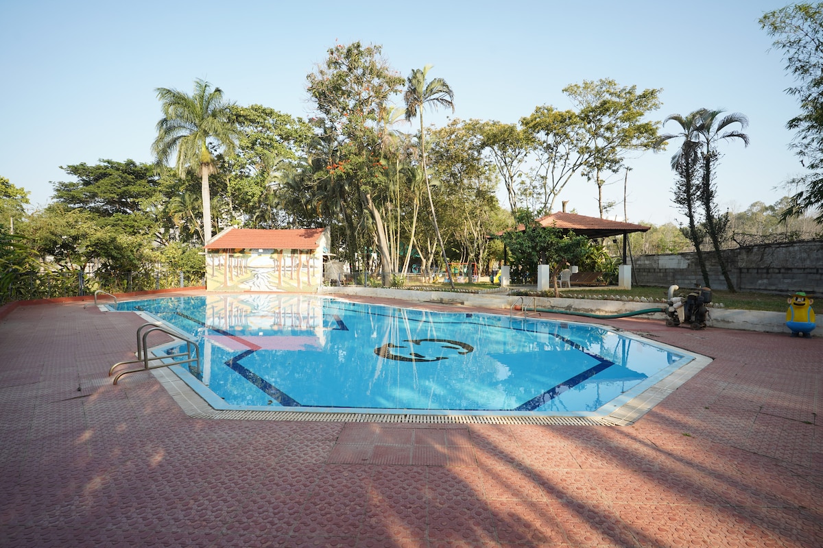 Відкрийте для себе EL Palm House: спокійний оазис біля ІТ-центру міста. 10 хвилин від технічного парку RGA. 15 хвилин від RMZ Eco World. Це незалежне помешкання в спокійному плануванні має пишний газон, задній двір, занурений басейн, повністю обладнану кухню. ДУШОВА ЗОНА НА ВІДКРИТОМУ ПОВІТРІ (крита, але на вулиці) Насолоджуйтеся тропічною атмосферою в оточенні пальмових рослин. Відчуйте гармонію міського життя та обіймів природи в EL Palm House, де кожна мить - запрошення відпочити та відновити сили.