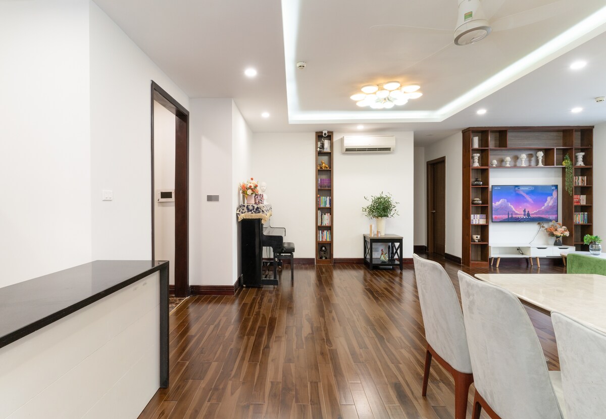 Ласкаво просимо до нашої квартири в Times City! Ця квартира з 4 спальнями — це прекрасний відкритий простір, де кожна кімната залита природним сонячним світлом. Ми подбали про кожен маленький куточок, щоб ви відчували себе максимально розслаблено: від теплих мелодій фортепіано, моментів релаксації у ванні, до двох прохолодних балконів, щоб насолодитися кавою. Завдяки тихому та повністю обладнаному робочому куточку це ідеальне місце для сімей або груп друзів, які шукають справжнє «домашнє» відчуття.