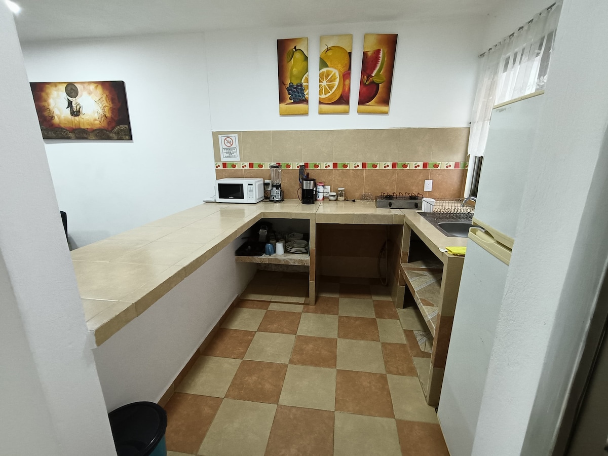 Відпочиньте всією сім 'єю в цьому місці, де спокій дихає. Ця затишна квартира ідеально підходить для сім 'ї або групи до 4 осіб, які шукають спокою та комфорту. Розташоване в спокійному районі Орісаби. Ця квартира ідеально підходить для тих, хто шукає спокійне місце з легким доступом до комфорту міста. Парковка в приміщенні. Спільна тераса ідеально підходить для відпочинку.