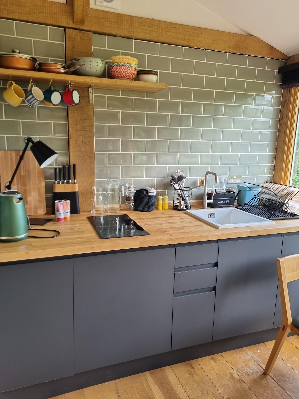 Переобладнане, сучасне, самостійне розміщення з окремим входом. Дрейфуюча дерев 'яна тема всередині та зовні з невеликим подвір' ям. Поруч з Гудвудом розташовані кінні перегони та автомобільні заходи, театр Чичестерського фестивалю, пляжі Вест-Віттерінг та Саут-Даунс. У апартаментах є повноцінна кухня, включаючи холодильник з морозильною кабіною, 2 кільцеві індукційні варильні поверхні, одна духовка та мікрохвильова піч. Окрема спальня з двоспальним ліжком, власною ванною кімнатою, дров 'яною піччю та місцем для зберігання/підвішування
