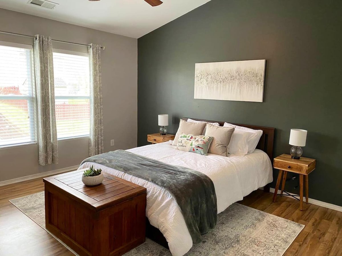 У цьому затишному помешканні з 3 спальнями, у кожній з яких є ліжко queen-size і 2,5 ванні кімнати, з комфортом зможуть розміститися 6 гостей. Ідеальне розташування за 3 хвилини від торгового центру Northlake Mall з багатьма магазинами та ресторанами, в 13 хвилинах їзди від Аптауна Шарлотт, в 20 хвилинах їзди від Національного центру білої води США та менш ніж за 30 хвилин від Carowinds. Для наших пухнастих друзів повністю огороджений задній двір у районі з громадським парком і великою кількістю довгих вулиць дозволить ваш улюбленець почуватися як удома. Професійне прибирання за протоколом Airbnb.