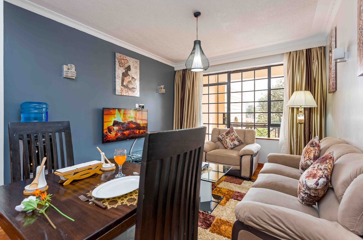 Discover the perfect blend of comfort and style in our bright and airy studio apartment, ideally located at the heart of Nairobi! This modern retreat is designed to cater to your every need, whether you're here for business or leisure. The large windows flood the studio with natural light, creating a warm and inviting atmosphere. We curated our furnishings and décor to ensure a chic and comfortable stay! Perfect for those who crave elegance and comfort.