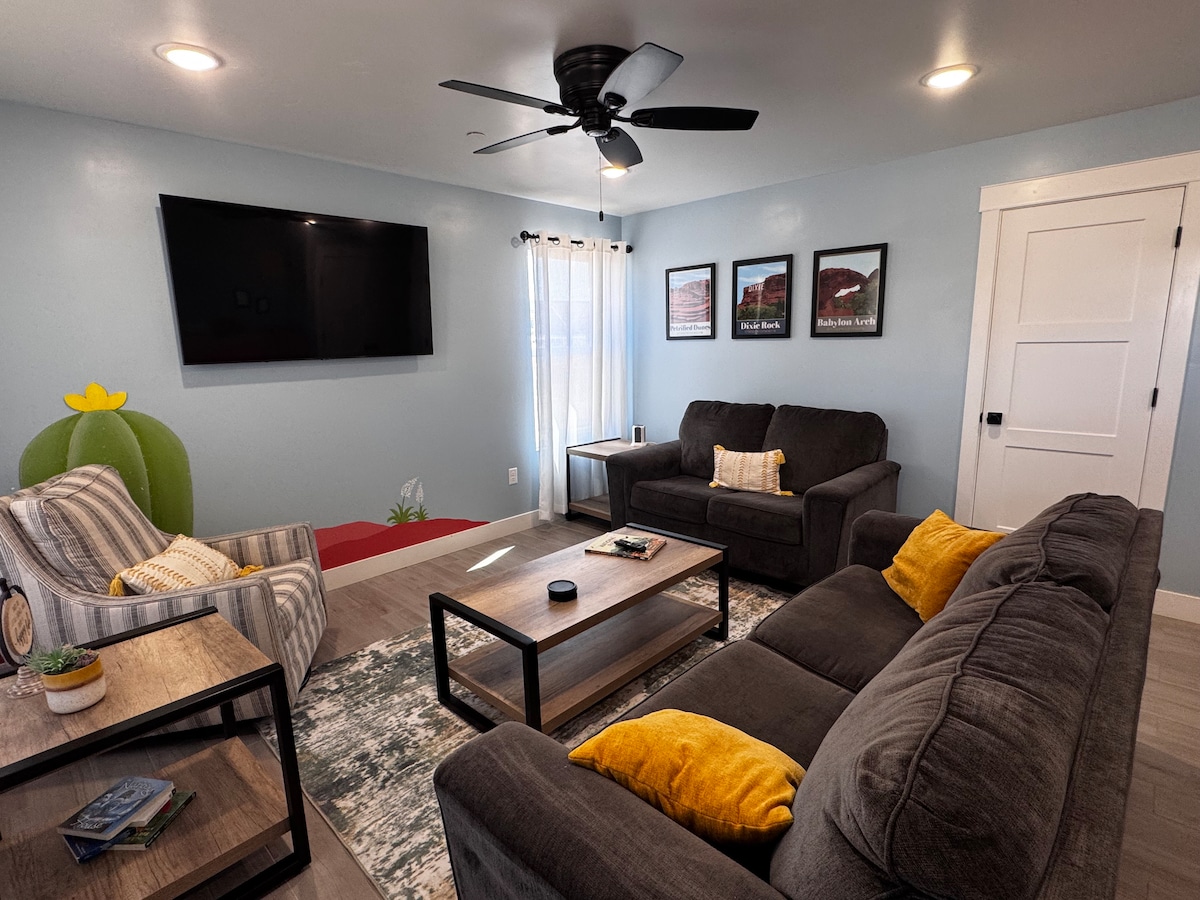Подивіться, чому ми ЛЮБИМО Південну Юту та ураган! Ця оселя, розташована в центрі, знаходиться менш ніж в 30 хвилинах їзди від химерних шоу Туакана, надзвичайних пейзажів у національному парку Зайон. Неподалік знаходиться національний парк Пішохідний парк Зайон, гольф світового класу, катання на лижах знаходиться в годині їзди на гірськолижному курорті Браян-Хед, пригод на бездоріжжі на навколишніх озерах і піщаних дюнах або просто приїдьте і відпочиньте в будиночку та ідеальне місце для відпочинку!