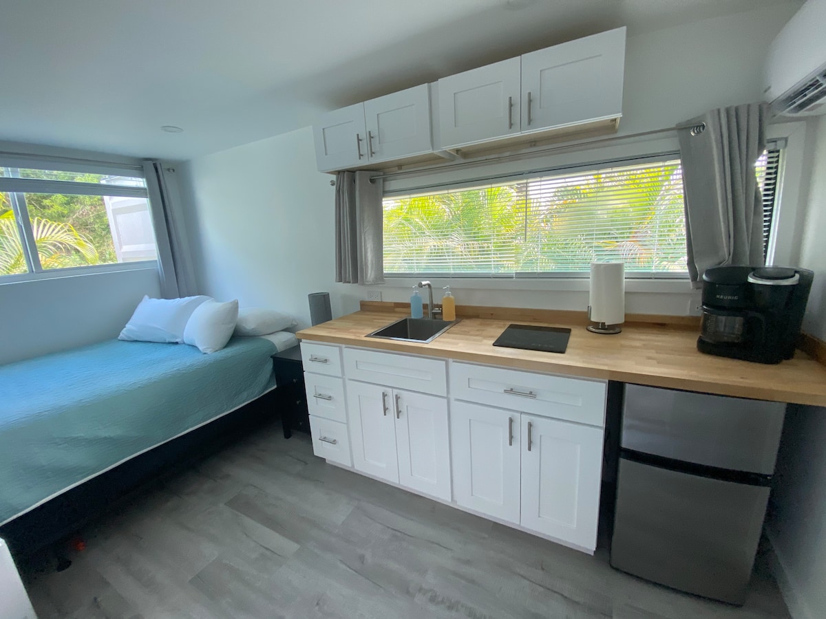 Ласкаво просимо до студії Sunny Boho Beach Studio, вашого спокійного відпочинку в Стюарті, штат Флорида! Ця спокійна студія в дуплексі пропонує приватність і ділить лише стіну з сусіднім помешканням. Ви всього в декількох хвилинах їзди на велосипеді до яскравого центру Стюарта з багатьма чудовими ресторанами. Насолоджуйтеся повноцінною кухнею, зручною їдальнею та вітальнею, а також компактною пральною/сушильною машиною для зручності. Відпочиньте в красиво відремонтованій ванній кімнаті. Зверніть увагу, що ви НЕ маєте доступу до басейну за допомогою цього помешкання.