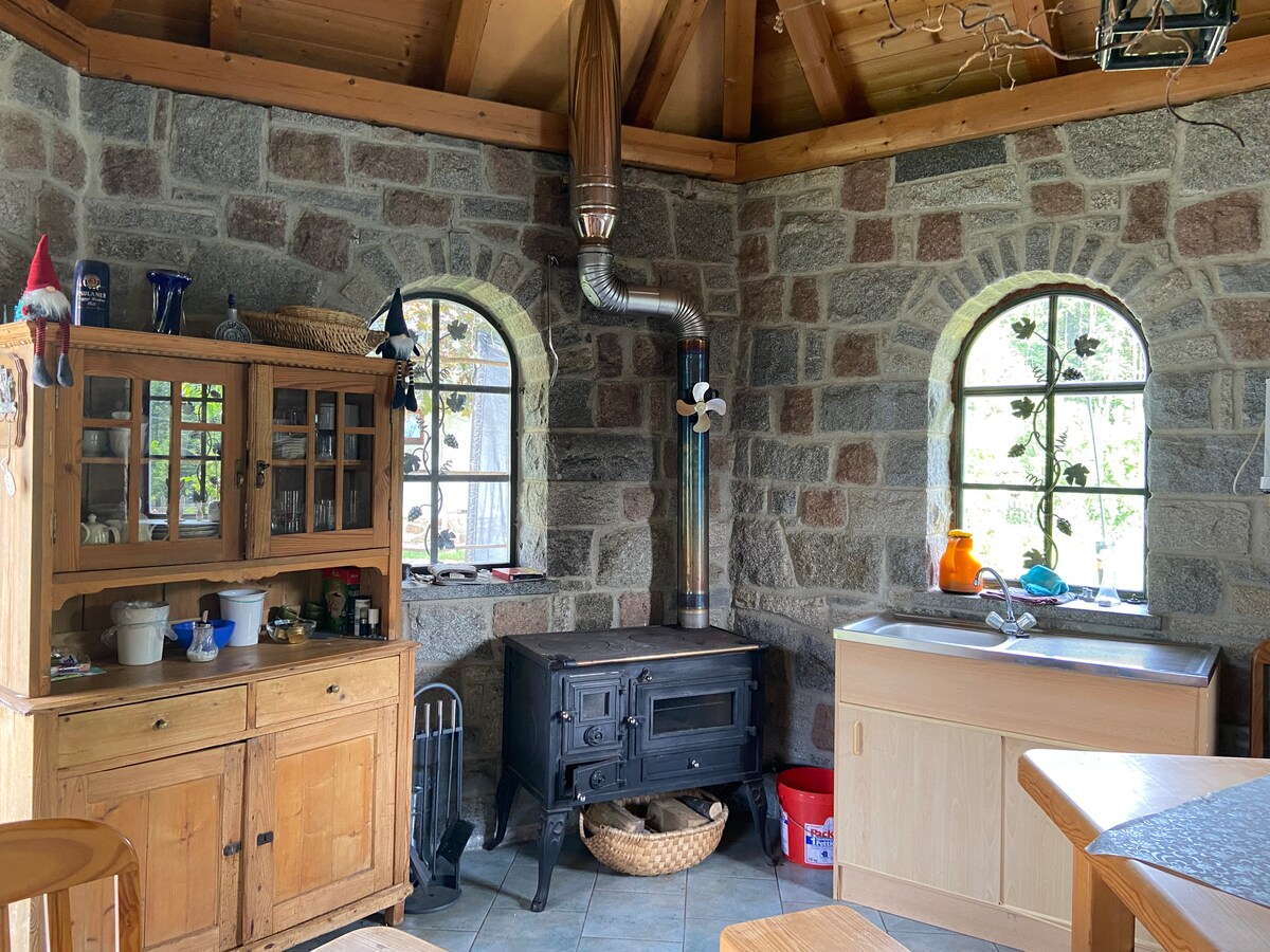 Стильний відреставрований старий амбар у приголомшливому відлюдному місці, що пропонує 120 кв. м простору з панорамним видом на сільську місцевість, галерею площею 50 кв. м з великими вікнами, інфрачервону кабіну, душову кабіну, ванну, розкішну дизайнерську кухню, мармурову підлогу з тераццо з електричним підлоговим опаленням, історичну піч із плиткою 1700 року та огороджений сад для стількох собак, скільки вам потрібно. Мрія всього за 15 хвилин від Пассау, 3 хвилини від автомагістралі та 10 хвилин від Дунаю. Можна забронювати з листопада 2025 р.