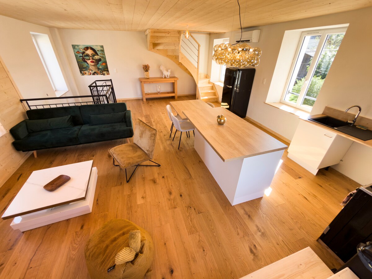 Ця простора та світла квартира, ідеально розташована в центрі чарівного селища в Верхньому Дубсі, пропонує вам усі зручності. •Велика повністю обладнана квартира. • Безпечне місце для мотоциклів і велосипедів. •Магазин, пекарня, продуктовий магазин, м 'ясна лавка. •Ресторан, тютюновий магазин. •Перукар, дитячий парк • Корти для петанк. Ідеальна база для ознайомлення з Верхнім Дубом та Швейцарією. комфортне та ідеальне розташування для незабутнього відпочинку з легкістю.