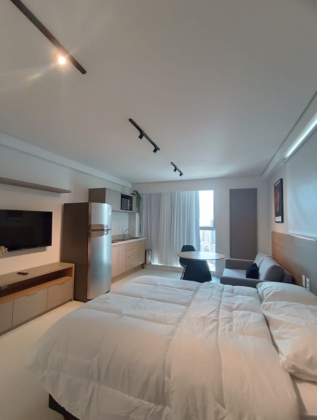 Це унікальне помешкання має свій стиль. Ідеально підходить для тих, хто збирається працювати або насолоджуватися кількома днями в Ресіфі. Чудове розташування, недалеко від пляжу, великих торгових центрів, ресторанів, пекарень, кави тощо. У нашій квартирі є зручне ліжко queen-size та допоміжне ліжко. Постільна білизна преміум-класу. Телевізор 50’. Інтернет. Добре обладнана кухня. Зручний стіл для прийому їжі або для роботи. Будівля з парковкою, пральнею, коворкінгом, місцем для гурманів, басейном, гідромасажною ванною, тренажерним залом.