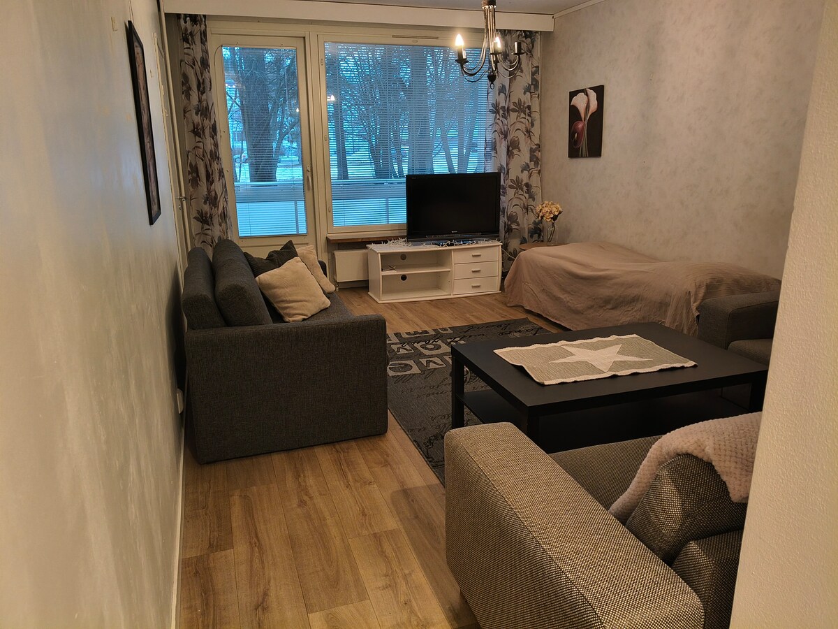 Культура, фітнес і закусочна від порога, в центрі міста. Що ви бажаєте зробити сьогодні? *Церква 400 м * Культурний центр 400 м (на реконструкції) * Olvi Hall і приголомшливий музей пивоварні (до речі, плата за вхід € 0) 440 м * Площа Ринок - 130 м. *торговий центр - 30 м; *лижні траси - 160 м. *Зона заходів Luuniemi (Oluset, Runni Rock) 240 м. *тенісні корти 1000 м. *міні-гольф - 460 м. *паб - 300 м; *пляж - 250 м; * місце для фізичних вправ неподалік - 250 м. *Цілодобовий тренажерний зал - 400 м. Вітальня є спільною з проміжною шторкою, якщо це необхідно, 2 як власне приміщення.