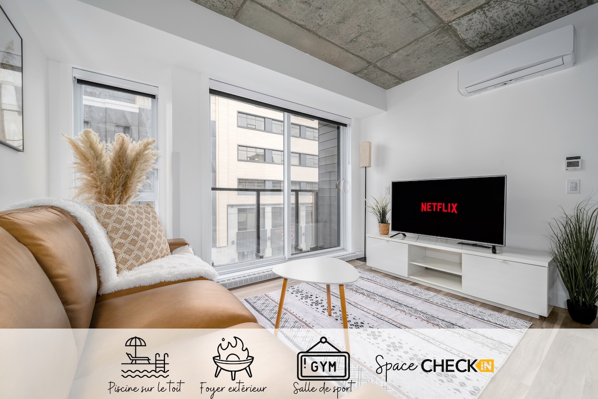 Приходьте і насолоджуйтеся незабутнім перебуванням в самому серці району Сен-Рош в Квебеку. Цей сучасний і розкішний кондомініум зачарує вам стільки ж спільних приміщень, скільки й дизайну інтер 'єру. Включено ✧️ критий паркінг Тераса ✧️ на даху з басейном, їдальнею та каміном на відкритому повітрі ✧️ Барбекю на даху доступне цілий рік. ✧️ Фітнес-зал ✧️ Яскрава і приємна квартира ✧️ Швидкий Wi-Fi і робоче місце ✧️ Всього в 15 хвилинах ходьби від Старого Квебеку.