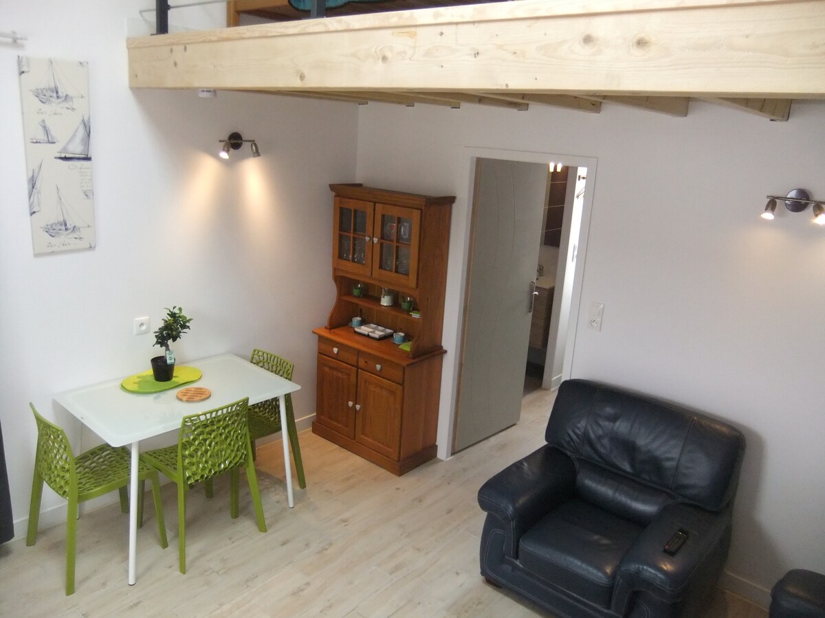 Будинок площею 40 м2 класифіковано 3 * на 2 особи. 1 спальня з 1 ліжком на 140 осіб з душовою кімнатою. 1 90 ліжок на антресолі для дитини. Окремий туалет. Постільна білизна, підковдра, наволочки та рушники для рук не надаються. Кухня обладнана посудомийною машиною... У 15 хвилинах ходьби від Rochefort ( спа-процедури), в 100 м від магазинів із видом на Шаранту і, звичайно, з устричними зрубами. wiFi кавоварка tassimo Домашні тварини не допускаються. Святкові ваучери до 50% від ціни.
