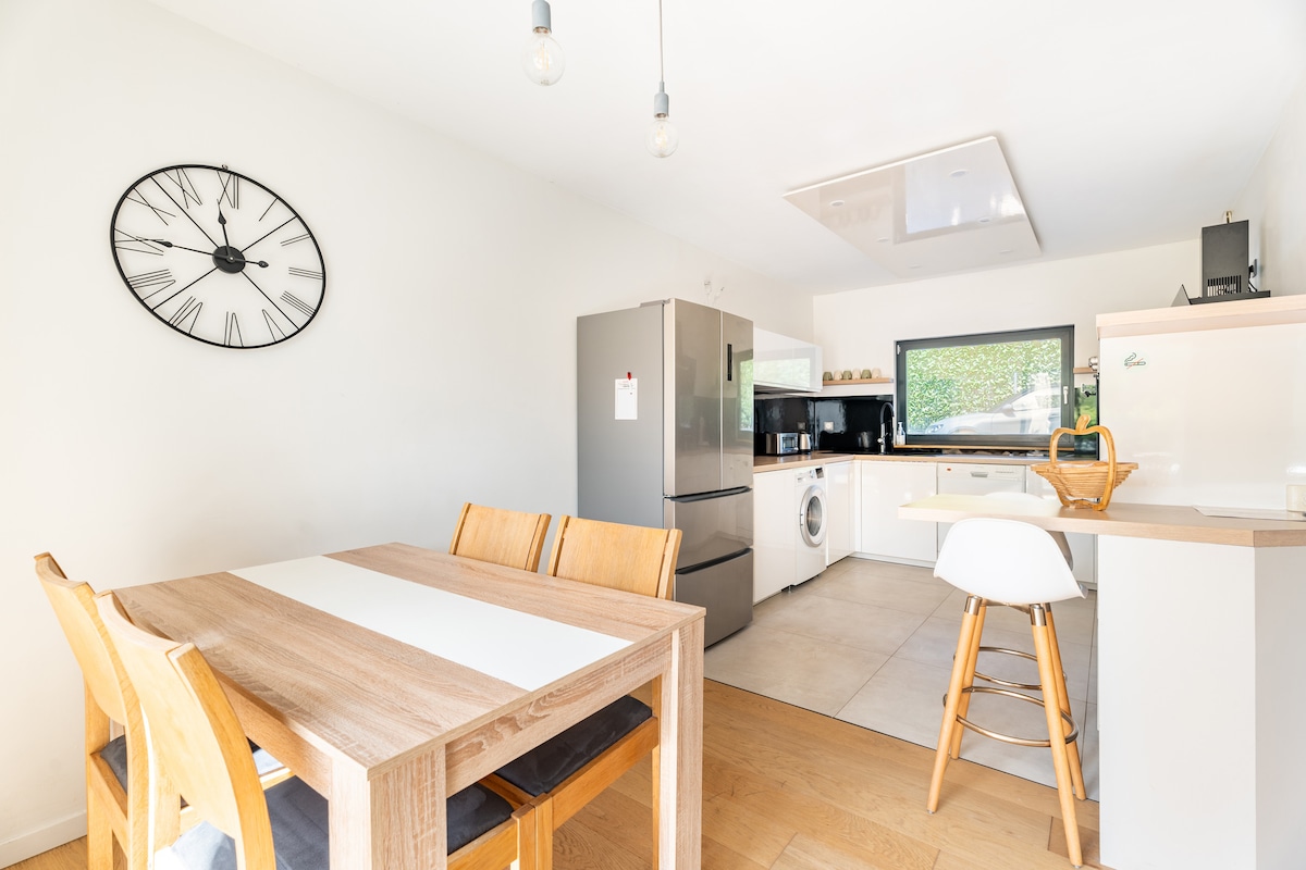 🌿 Сучасна квартира з кондиціонером у зеленій зоні Розташоване поблизу лікарні, магазинів, старого міста Гренобля та його канатної дороги. 🚲 Досліджуйте місто та його численні велосипедні доріжки на наданих велосипедах. 🌞 Насолоджуйтеся терасою з барбекю, чудовим садом, бадмінтоном. Джакузі (у сезон). 🧺 У квартирі є пральна машина та посудомийна машина. 🚗 Доступне приватне й безпечне паркувальне місце 🚫 Зверніть увагу: квартира не пристосована для людей з обмеженою мобільністю.