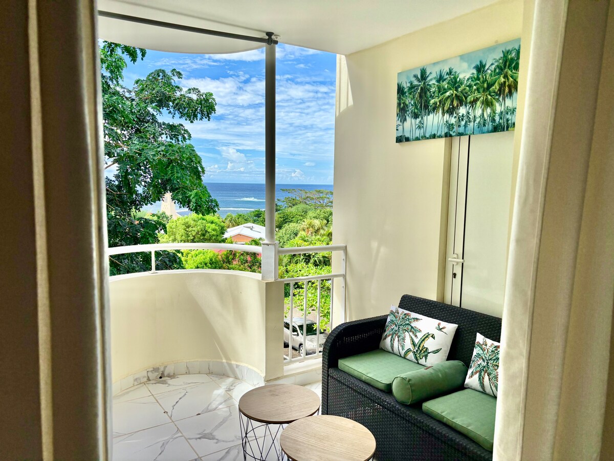 Розслабтеся в цьому затишному та стильному помешканні. Насолоджуйтеся незабутнім перебуванням у цьому помешканні з безперешкодним видом на затоку Тартан. Квартира повністю обладнана і навіть має офіс!... У 5 хвилинах від цього помешкання є невеликі ресторани, де ви відкриєте для себе принади Мартиніки. Ідеальне розташування, щоб насолоджуватися різними походами на півострів Каравель. Пляжі різноманітні, для відпочинку або серфінгу для любителів пригод.