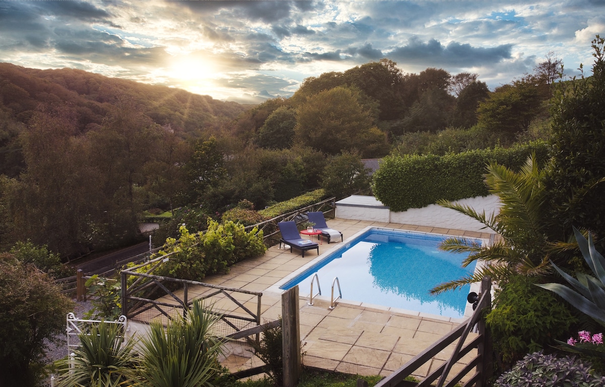 Приголомшливий колишній котедж для садівників з приватним басейном затамував подих, захопивши ландшафт національного парку Ексмур. [БАСЕЙН БУДЕ ЗАКРИТИЙ З 17 ВЕРЕСНЯ ПО 14 ТРАВНЯ] Гідромасажна ванна цілий рік. Котедж розташований у селі Рокфорд, в 4 милях ходьби від Лінмута або в декількох хвилинах їзди. До послуг гостей сучасна техніка та дизайн. Розташований переважно на одному рівні, в мезоні з низькою стелею розміщується невелике двоспальне ліжко та додаткове односпальне ліжко. Сад площею один акр - це справжнє задоволення з великою кількістю точок зору.