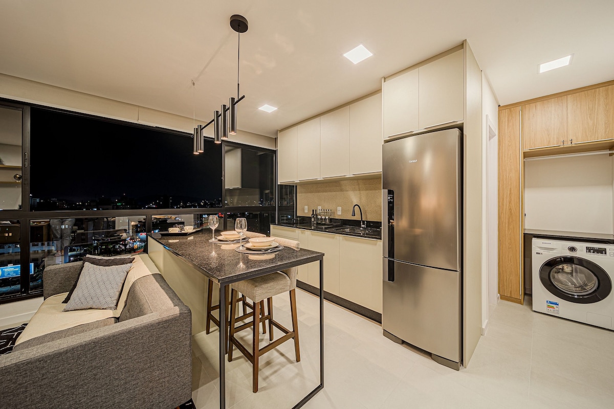 Розташоване недалеко від центру, Ця квартира знаходиться в 5 хвилинах від торгового центру Mueller, у тихому та лісистому районі, з барами, ресторанами та легким доступом до BR 101. У квартирі є 43-дюймовий смарт-телевізор, спліт-кондиціонер, ліжко розміру Queen size, пральна машина, балкон, газовий душ, дуже добре обладнана кухня та телевізійна кімната. У помешканні також є 1 паркувальне місце без додаткової плати, басейн, фітнес-центр, кімната для вечірок, ігрова бібліотека та магазин. Усе це в чарівній і елегантній будівлі!