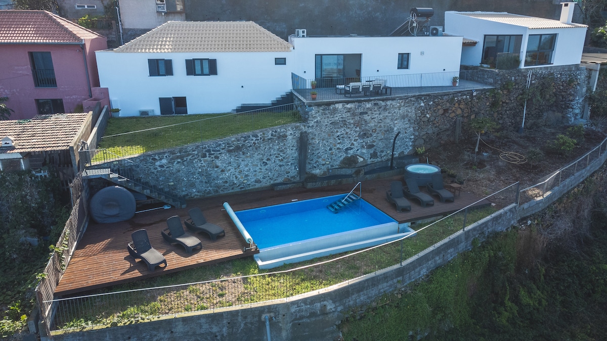Розслабтеся в цьому приголомшливому португальському домику. Будинок був побудований з відтінком природного каменю та антикварними деталями для розкішного, але чарівного відчуття. Насолоджуйтеся видом на море та гори Кабана Коста-Норте. Будинок розташований в Ribeira Da Janela, в декількох хвилинах ходьби від океану, природних басейнів Порто-Моніса та багатьох інших пам 'яток!