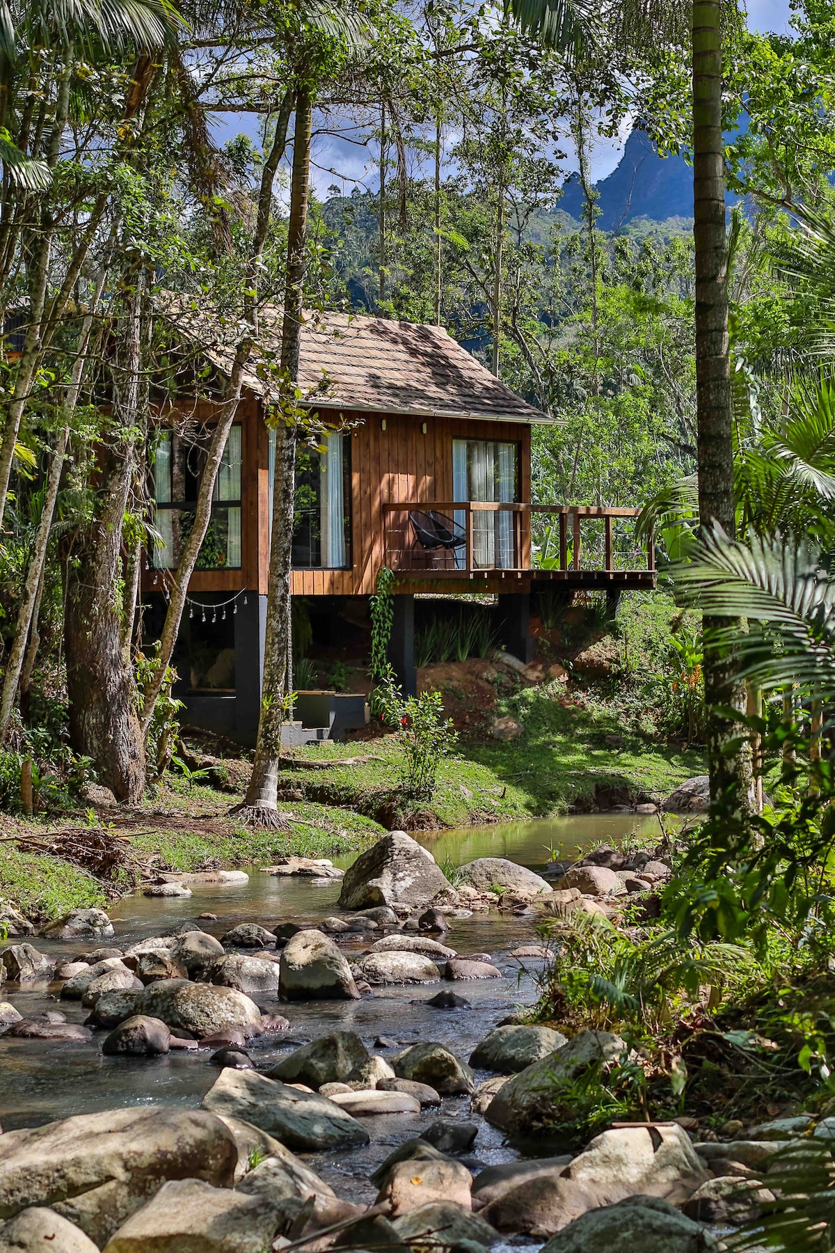 Imagine um chalé encantador, onde cada detalhe foi projetado para proporcionar uma experiência excepcional. Relaxe na banheira de hidro, aqueça-se ao lado da lareira, e desfrute de uma noite tranquila. Com uma cozinha, você pode criar refeições deliciosas enquanto aprecia a vista deslumbrante da natureza ao seu redor. Uma lagoa cristalina oferece uma oportunidade de se conectar com a natureza. Experiência única, onde a paz e a beleza se fundem em um só lugar. Bem-vindo ao seu oásis privado!
