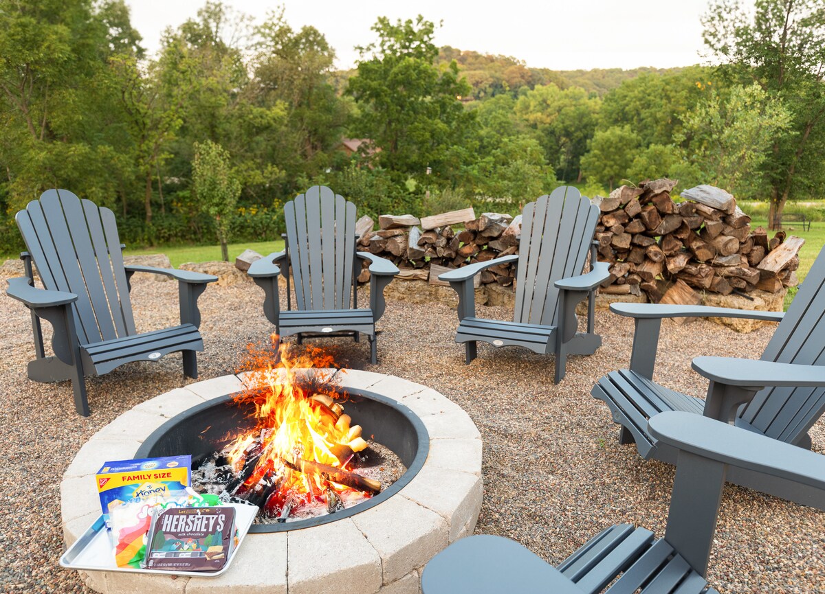 Відпочиньте й знайдіть натхнення всього за 1,5 години від Чикаго на фермі Ten Acre Farmhouse Retreat. Призначено для сімей, інтимних моментів і відпочинку. Високошвидкісний Wi-Fi, Smart TV та робочі місця покращують ваше перебування. Цей маєток площею 5000 квадратних футів поєднує сучасний комфорт із сільським шармом на 10 тихих акрах біля Женевського озера. Розкішні спальні, джакузі та розваги преміум-класу чекають на вас. Дві зовнішні камери спостерігають за переднім двором і проїзною частиною. Внутрішні камери відсутні. Бронюйте зараз.