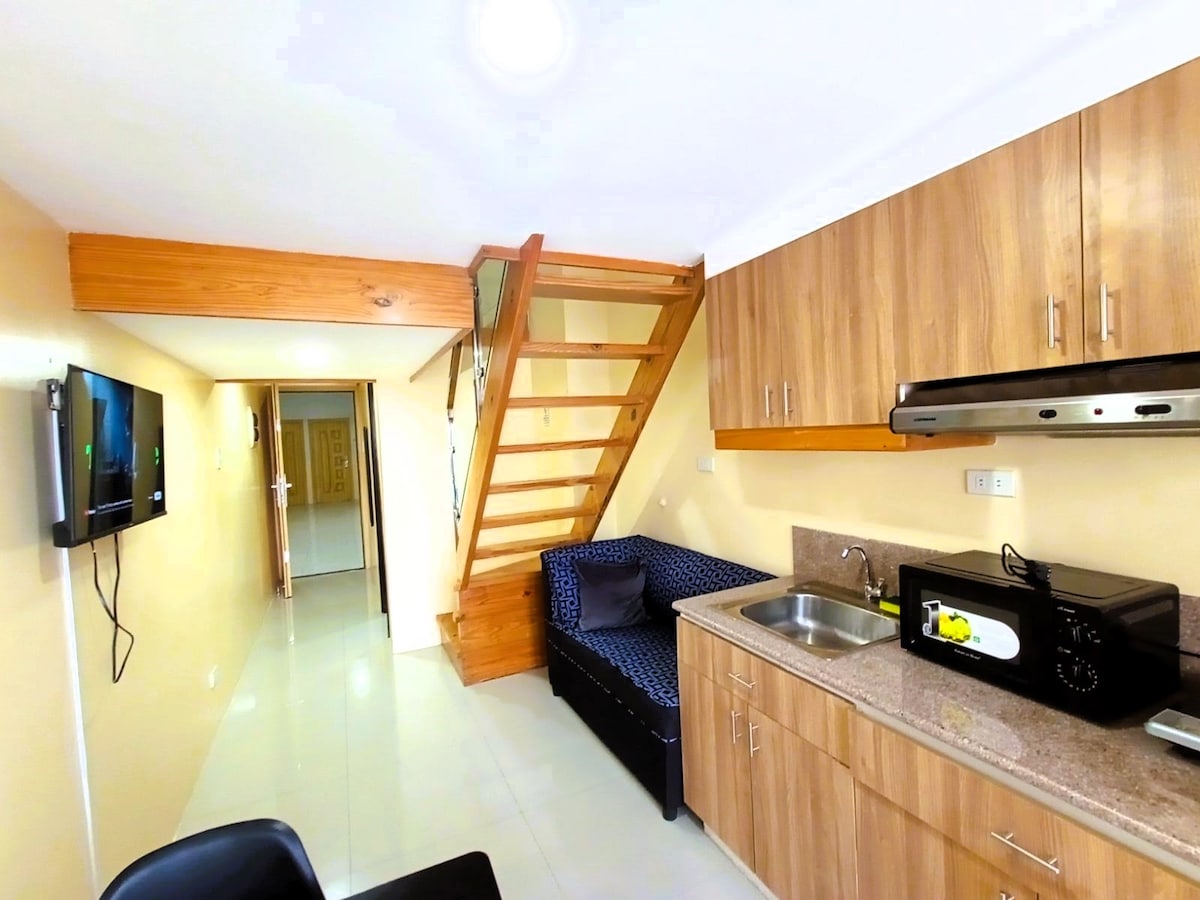 Гостюйте в акредитованому сучасному кондомініумі в лофті з чарівністю старого Багіо, змішаного зі зручністю розумного будинку з голосовими командами. Зручно розташоване вздовж шосе і знаходиться недалеко від метушні та метушні центру міста, який ідеально підходить, щоб насолодитися холодною погодою міста Пайнс. Доступні розваги: Netflix і Spotify. Насолоджуйтеся супершвидким Інтернетом через нашу оптоволоконну мережу з максимальною швидкістю 30 МБІТ/С. Можна організувати безкоштовну парковку.