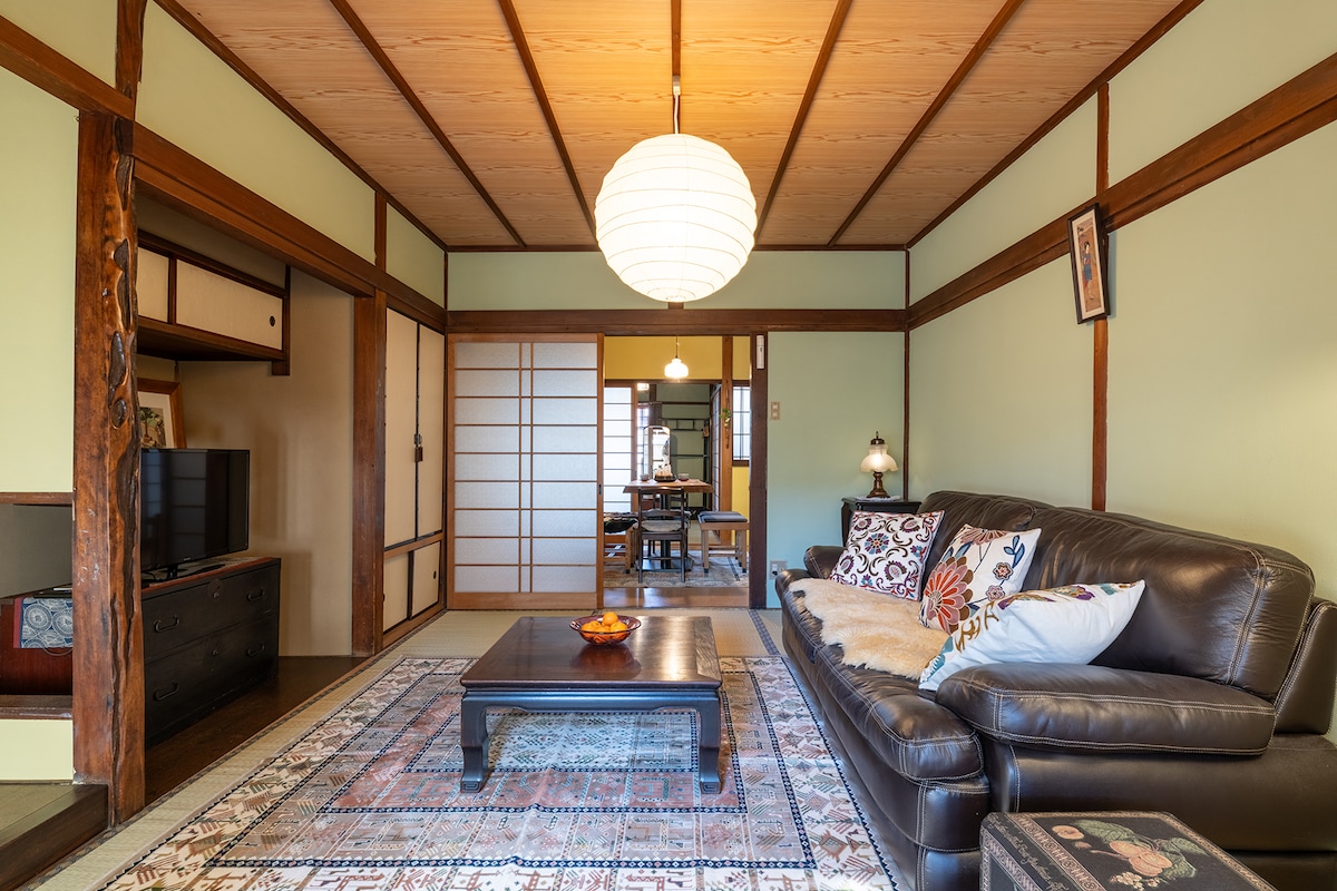 Всього в 6 хвилинах ходьби від станції метро «Імадегава». До імператорського палацу можна дійти за 10 хвилин. Ви можете гостювати, як у Кіото. У нас є дерев 'яна ванна з невеликим видом на сад. Крім житлового простору, є дерев 'яна тераса, ви зможете відпочити на дерев' яній терасі з видом на сад. Електричні велосипеди можна взяти напрокат безкоштовно. У нас є 2 будинки, будинок знаходиться по сусідству, 7 осіб можуть перебувати вчасно. Якщо ви бажаєте, зробіть бронювання від A&B.