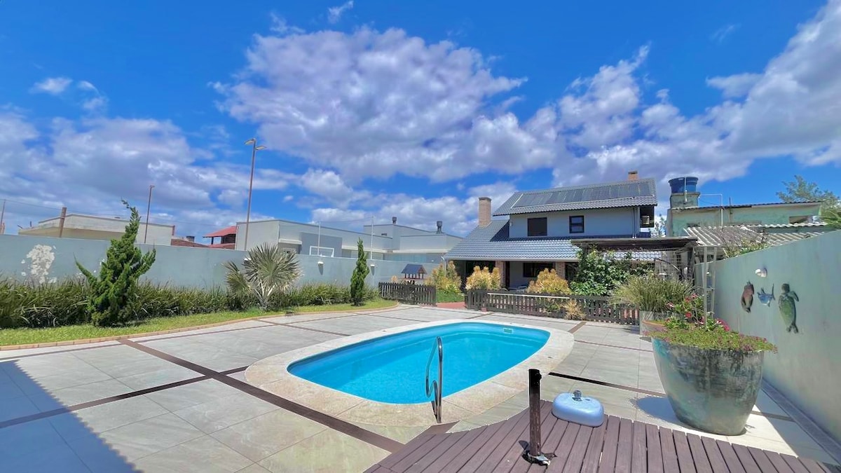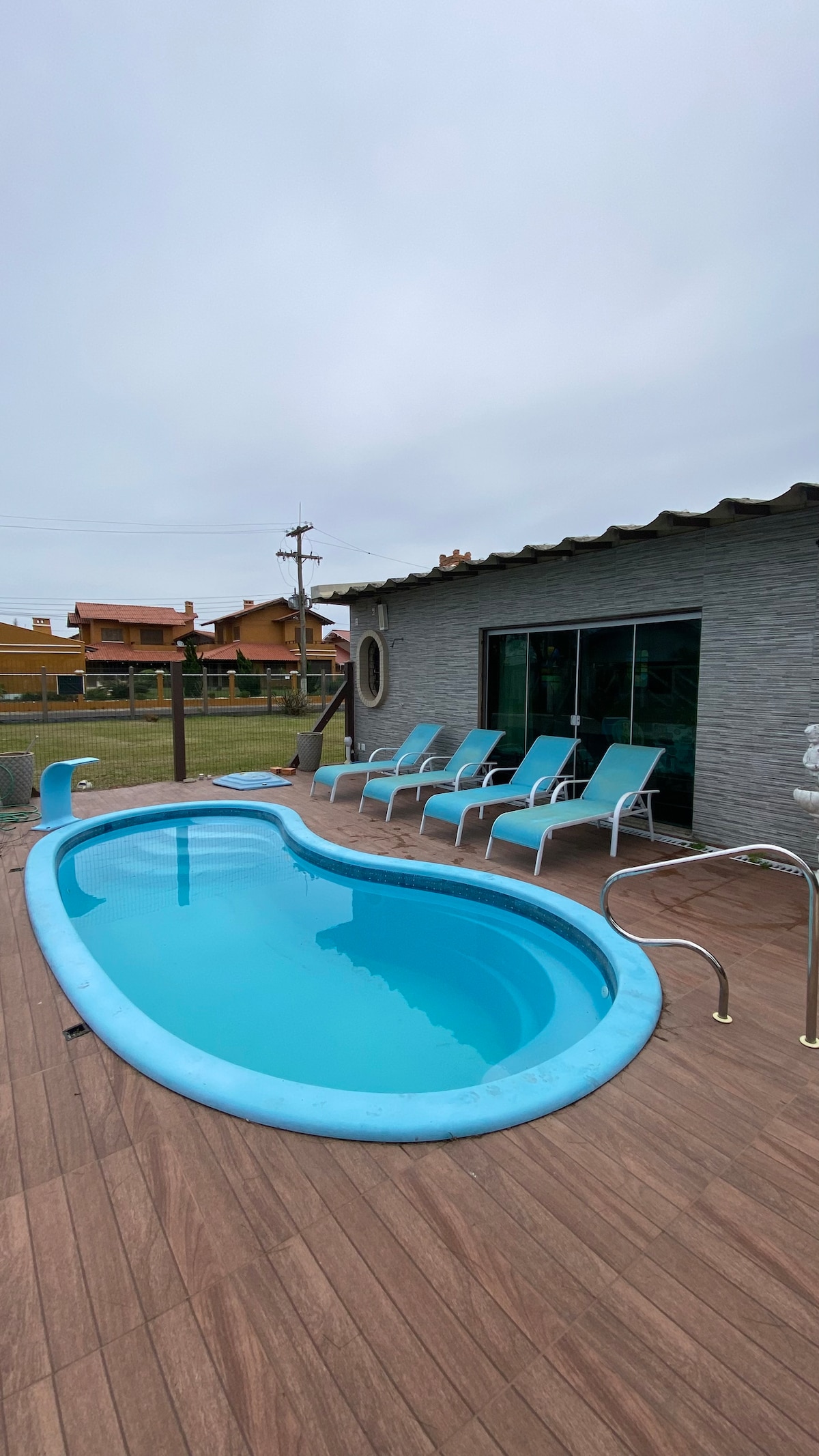 Casa a 5 quadras do mar (350m) com piscina enorme e um pátio gigante para você aproveitar o verão com sua família e amigos! A casa possui um quarto com cama beliche e outro quarto com cama de casal no mezanino, dois banheiros externos (somente um deles com chuveiro), cozinha completa e equipada (com fogão, forno, cafeteira, liquidificador e utensílios). Sala de estar com tv com canais abertos e 3 sofás e uma bicama A casa possui churrasqueira na área interna e um quiosque ao lado da piscina.