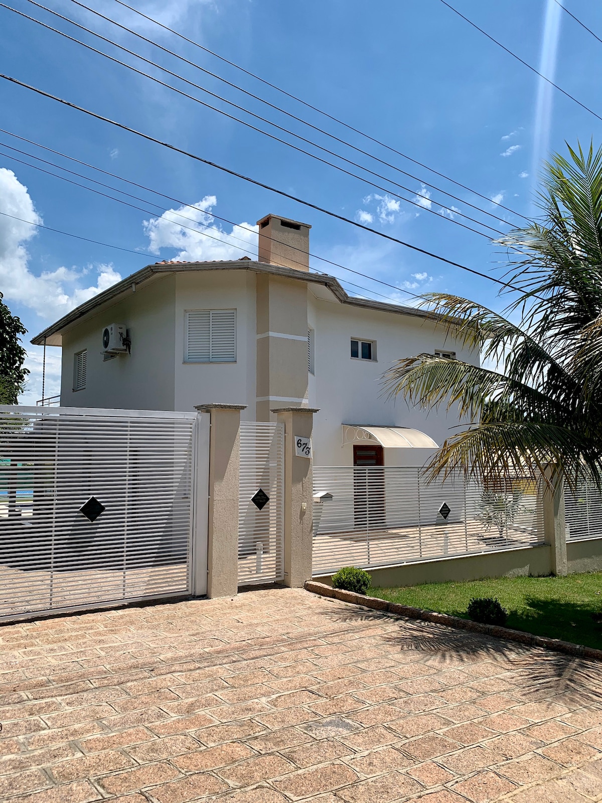 Casa moderna em condomínio com portaria 24hs, ideal para relaxar com sua familia/amigos. Área de lazer com piscina, playground, campo de futebol e churrasqueira. Ar condicionado em todos os quartos, e sala, cozinha completa, WiFi de alta velocidade (700 mega). Terreno 2500 m e casa 350 m. Garagem coberta para 2 carros e mais 4 descobertas. Cuidamos de 2 gatinhos mansos na casa, deixaremos ração para eles na parte externa da casa na sua estadia. Não fornecemos toalhas de banho e piscina.