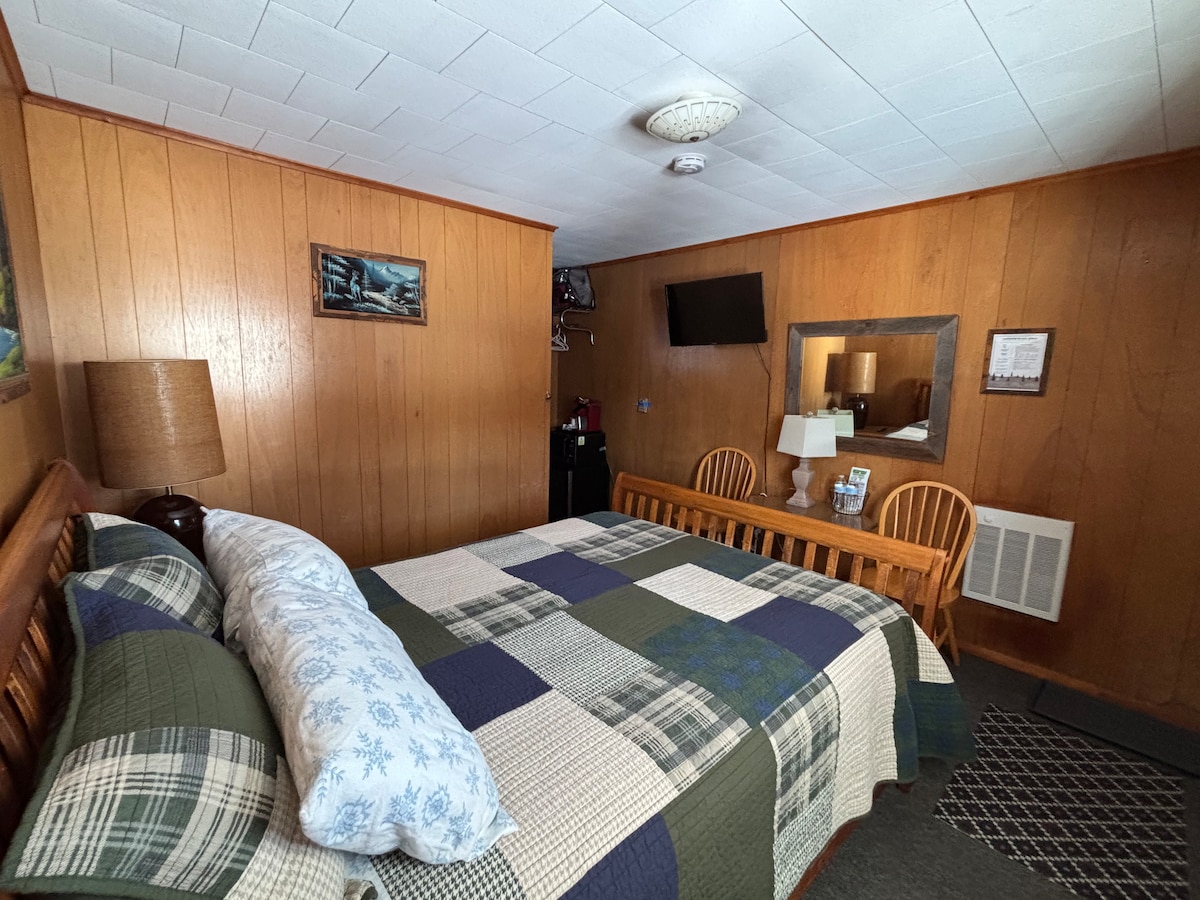 Рай для снігоходів! Велика парковка та розташування на трасі 5 Наші кімнати для перебування з домашніми тваринами розташовані поруч із нашим приватним піщаним пляжем на 4-му озері, де є зручні місця для відпочинку для 2 осіб. У цьому помешканні є: 2 повністю регульовані ліжка queen-size Смарт-телевізор Душ Обідній стіл із місцями для 4 осіб Тепло та кондиціонер Гранітна стійка Кухонна плита з 2 конфорками Холодильник і морозильна камера Мікрохвильова піч Постільна білизна, рушники та рушники для рук Паперові рушники та туалетний папір Мочалки Кавоварка Keurig Шампунь і кондиціонер