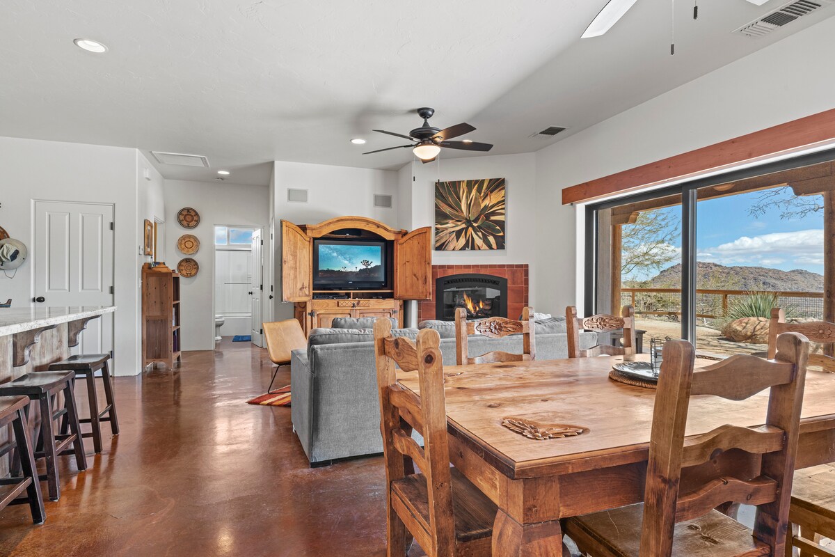 Розташований у мальовничих гарячих джерелах пустелі, цей нещодавно побудований будинок ідеально підходить для насолоди сонячними днями та зоряними ночами. У помешканні є відкритий план поверху, велика вітальня та простора кухня. Є три спальні, дві ванні кімнати та пральня. Задній двір ідеально підходить для розваг з басейном, спа-салоном та каміном. Незалежно від того, чи ви сім 'я, чи група друзів, які проводять час разом, вам сподобається все це помешкання.
