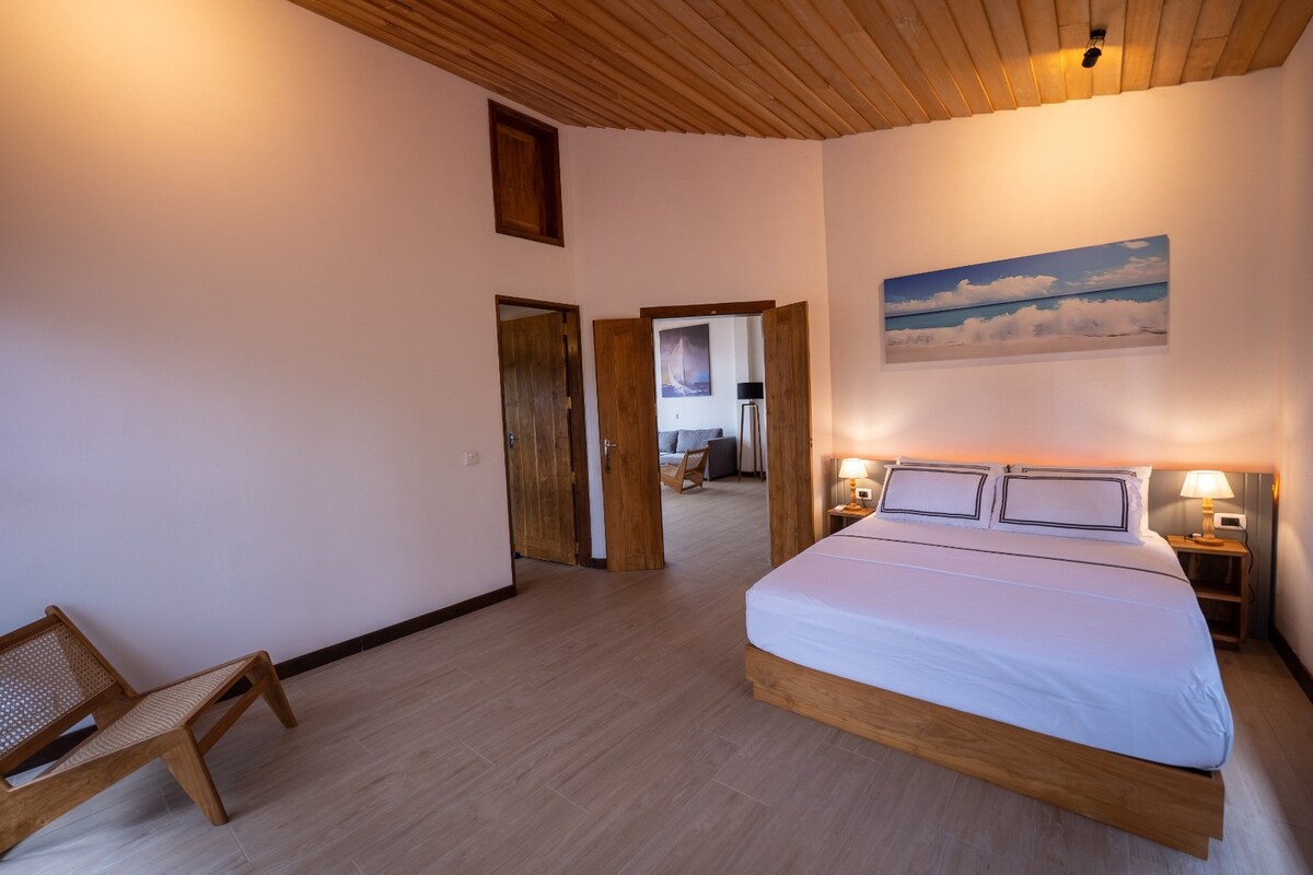 Сучасний пляжний будинок із великими відкритими кімнатами, високими стелями та великою кількістю природного освітлення. Білий декор підкреслюється яскравими кольорами та дерев 'яними текстурами. Ексклюзивне користування будинком, садом. 10-метровий басейн із неглибокою сходинкою Кондиціонер плюс стельові вентилятори у всіх спальнях Безкоштовний оптоволоконний Wi-Fi Смарт-телевізор Пральна машина Кухня: еспресо-машина, аерофритюрниця Стілець для годування, дитяче ліжечко та портакот Персонал перебуває на місці щодня. Безкоштовний щоденний сніданок, і наш менеджер може організувати для вас власного шеф-кухаря.
