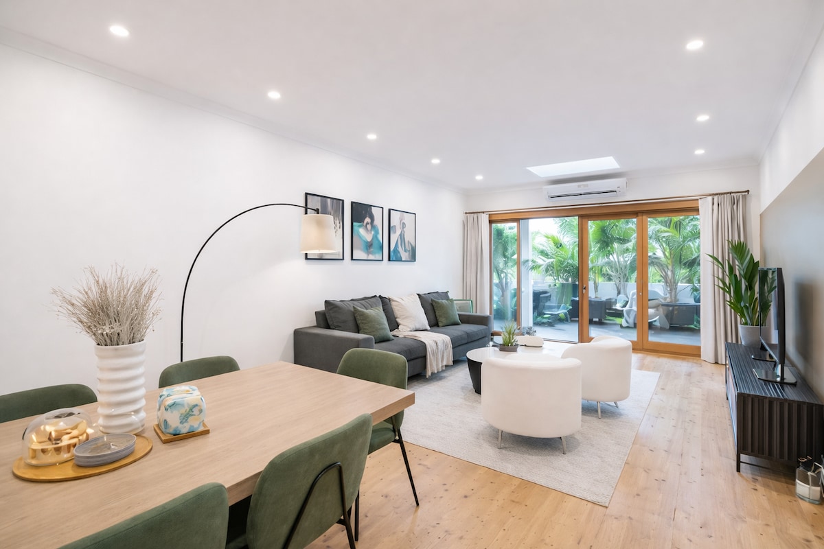 ✨Мальовничі прогулянки, зоряні ночі та принади Сіднея✨ Гостюйте в цьому просторому таунхаусі в центрі Пірмонта. Лише кілька кроків до легкого метро та зручна прогулянка до Дарлінг-Гарбор, Центрального ділового району та туристичних об’єктів. Задовольніть свої потреби в готелі The Star і насолодіться вечерею біля гавані в Дарлінг-Гарбор, що знаходиться всього за 10 хвилин пішки. Насолоджуйтеся великою вітальнею, власним балконом і сучасною кухнею, які ідеально підходять для відпочинку або спільного проведення часу. Ідеально підходить для сімей, груп або ділових бронювань.